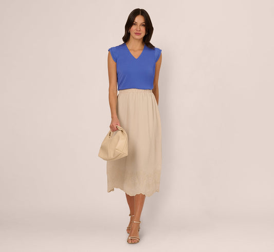 V-Neck Top With Pleated Flutter Sleeves In Amparo Blue