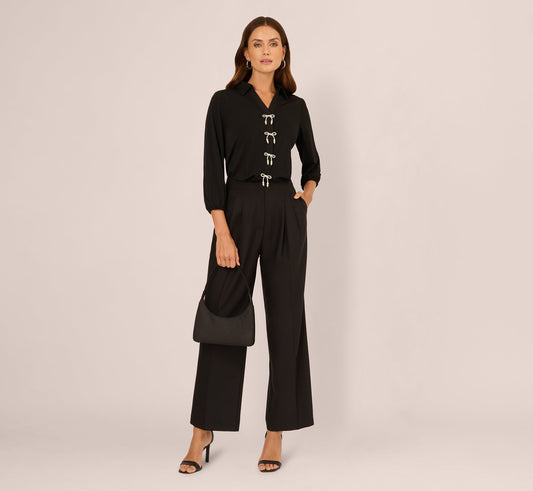 Wide Leg Jumpsuit with Beaded Flutter Sleeves