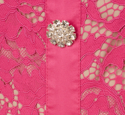 Cap Sleeve Rhinestone Button Lace Short Dress In Petunia