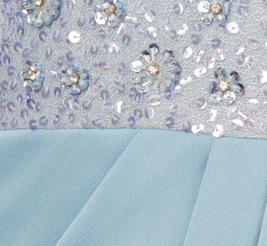 Off Shoulder Beaded Satin Combo Long Dress In Clear Water