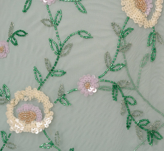 Sleeveless Square Neck Beaded Mermaid Gown In Frosted Sage Nude