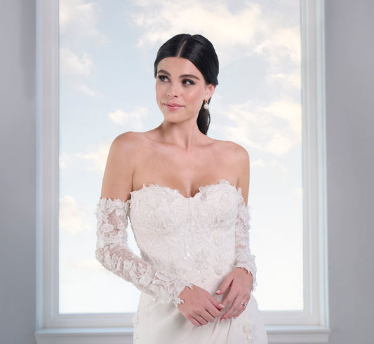 Crepe Slim Gown With Detachable Long Sleeves In Ivory Nude Silver