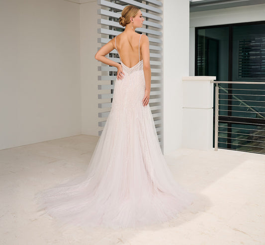 Ruffled Tulle A-Line in Ivory Blush Nude