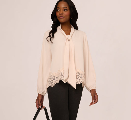 SAVE 37%Lace Hem Tie Neck Blouse In Ivory