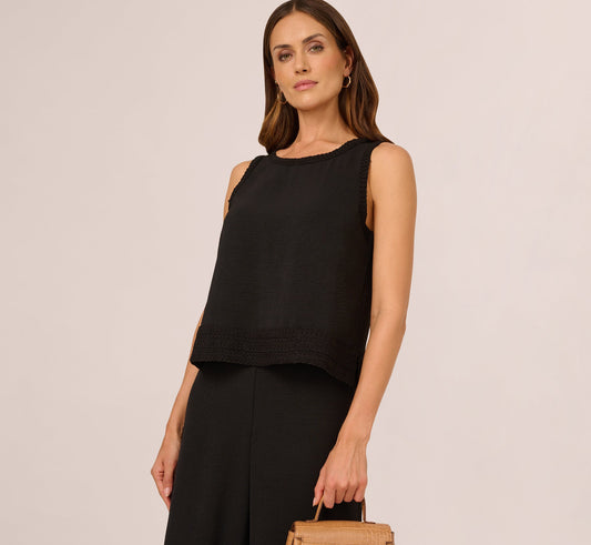 Sleeveless Soutache Trim Top In Black