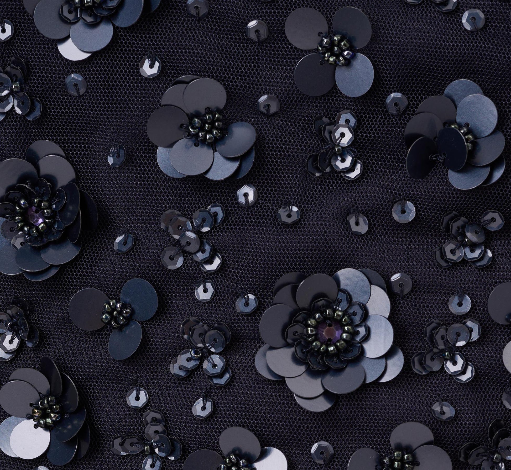 3D Floral Hand-Beaded One-Shoulder Long Column Gown In Dusty Navy