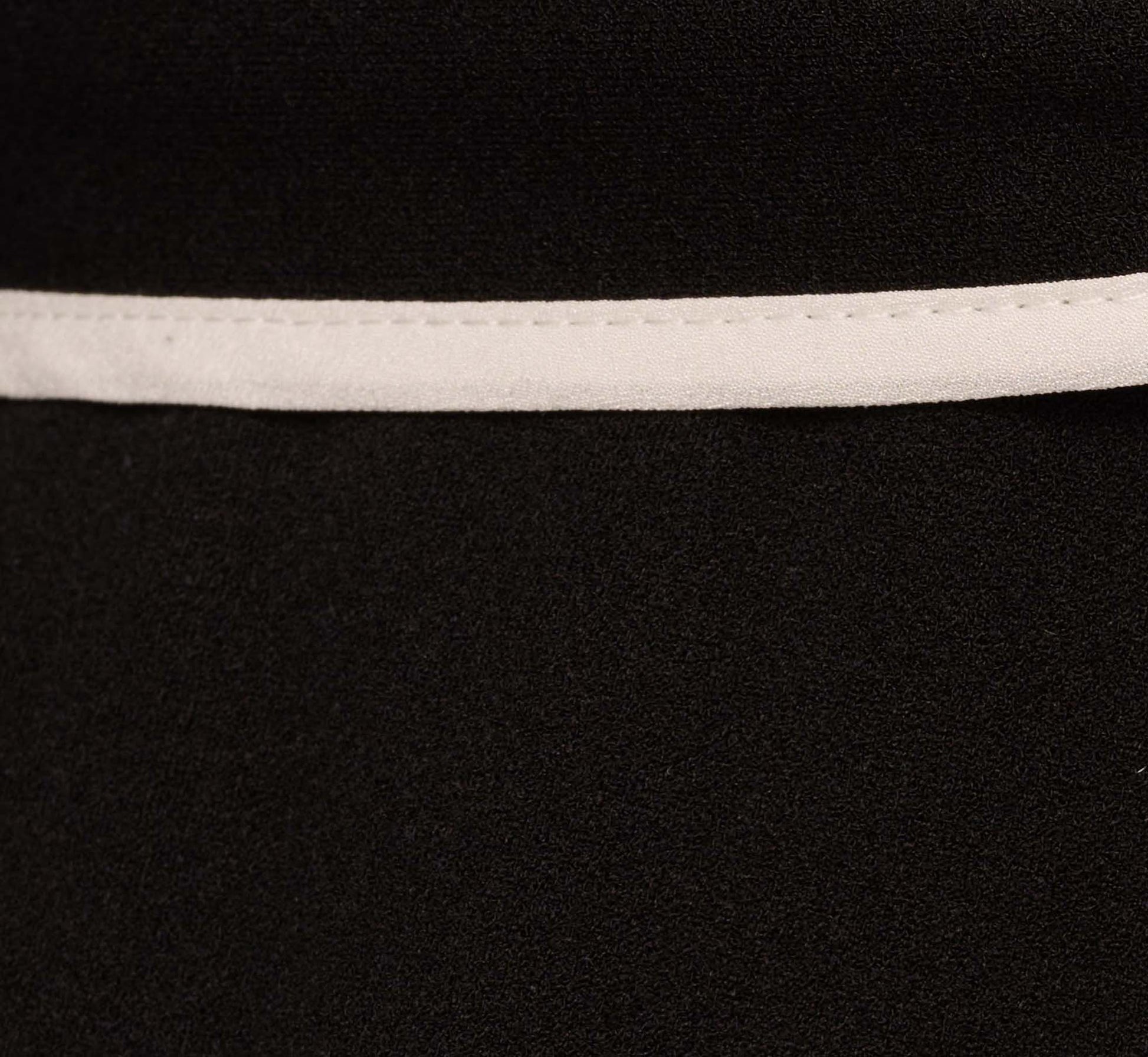 Sleek yet structured, this crepe jumpsuit is designed to impress with every detail thoughtfully considered. The square neckline frames the collarbone with understated elegance, while three quarter bell sleeves add graceful movement. A wide leg pant creates a lengthening silhouette, anchored by a front tie belt that cinches the waist for a customizable fit. Contrast tipping outlines the neckline, sleeves, and belt for subtle yet striking accents that elevate the overall design. Polished enough for evening, effortless enough for day, this piece transitions seamlessly from desk to dinner.
