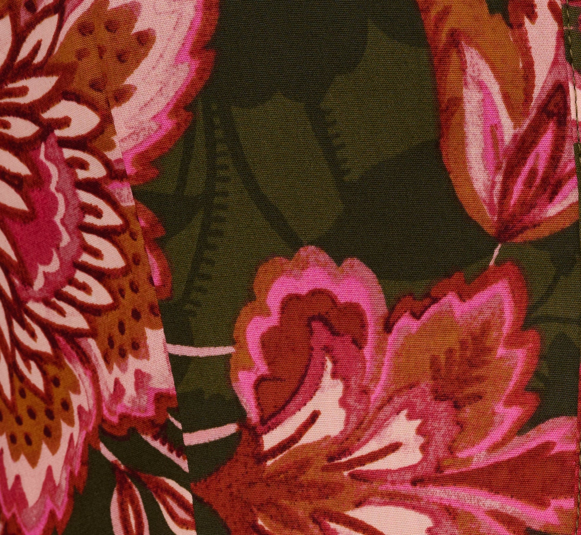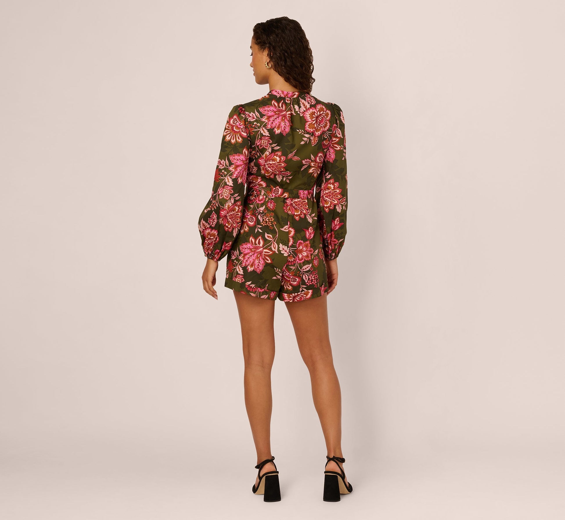 Bishop Sleeve Button Front Floral Romper In Olive Multi