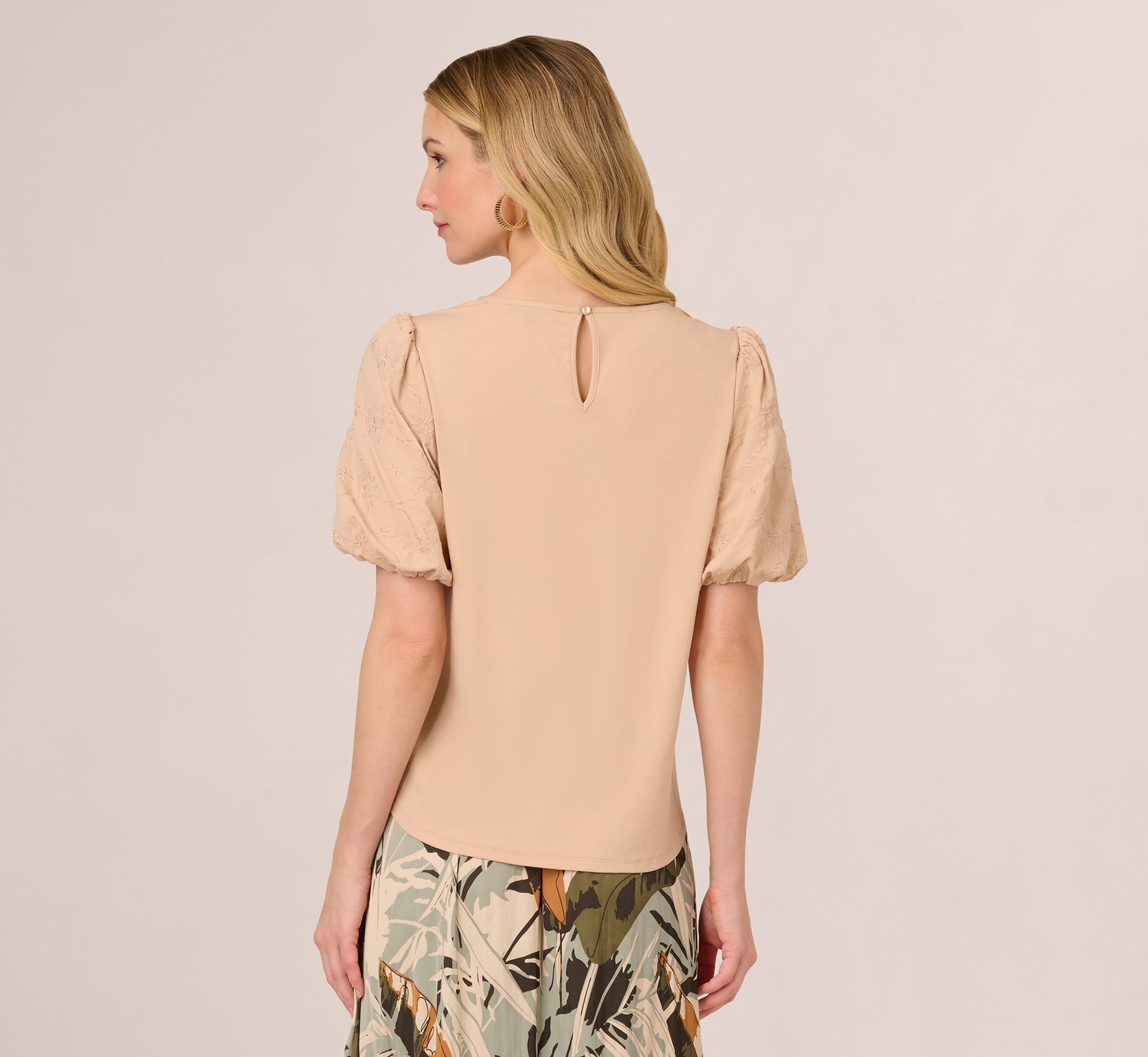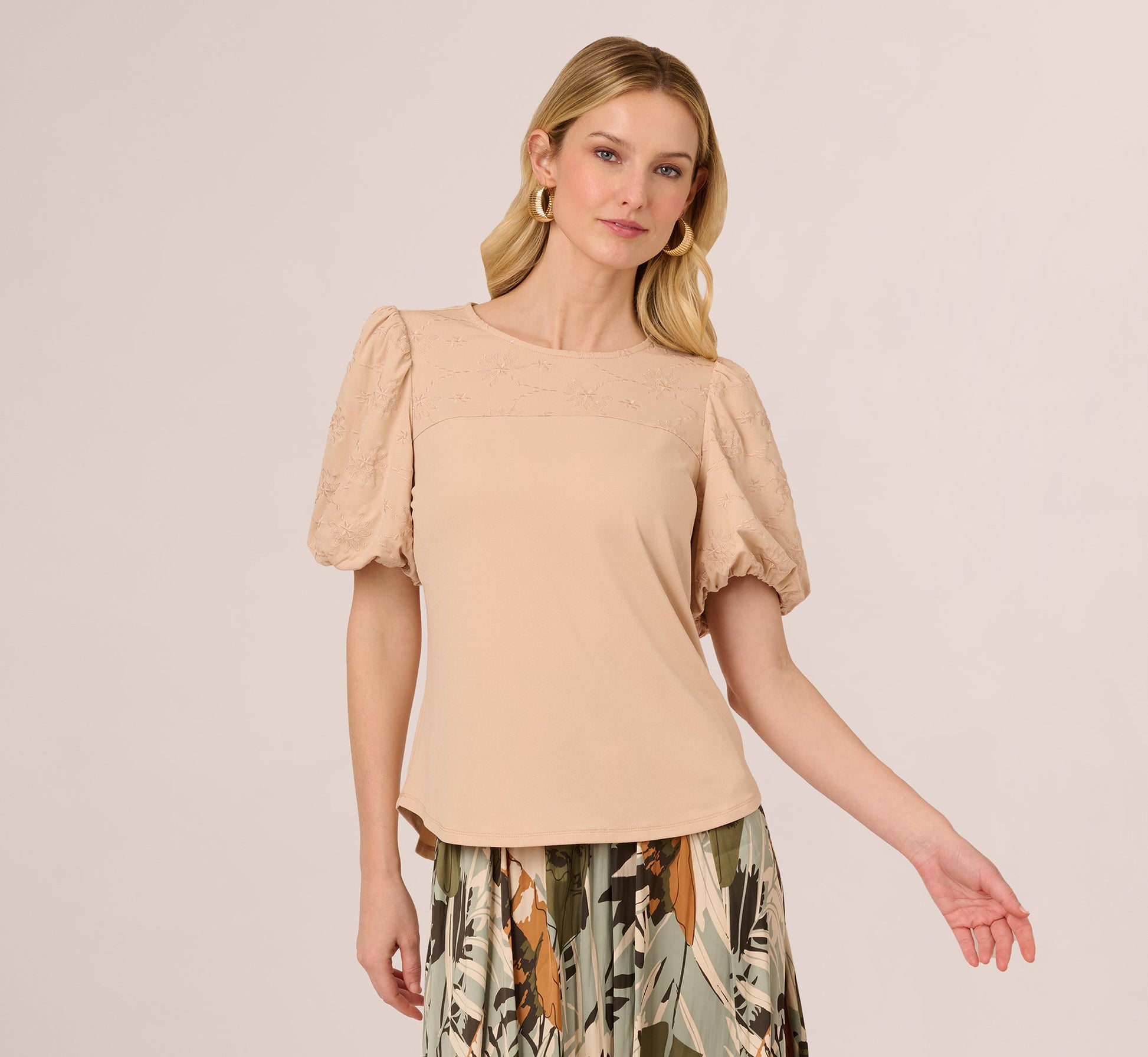 Bubble Sleeve Embroidered Top In Champagne Blush