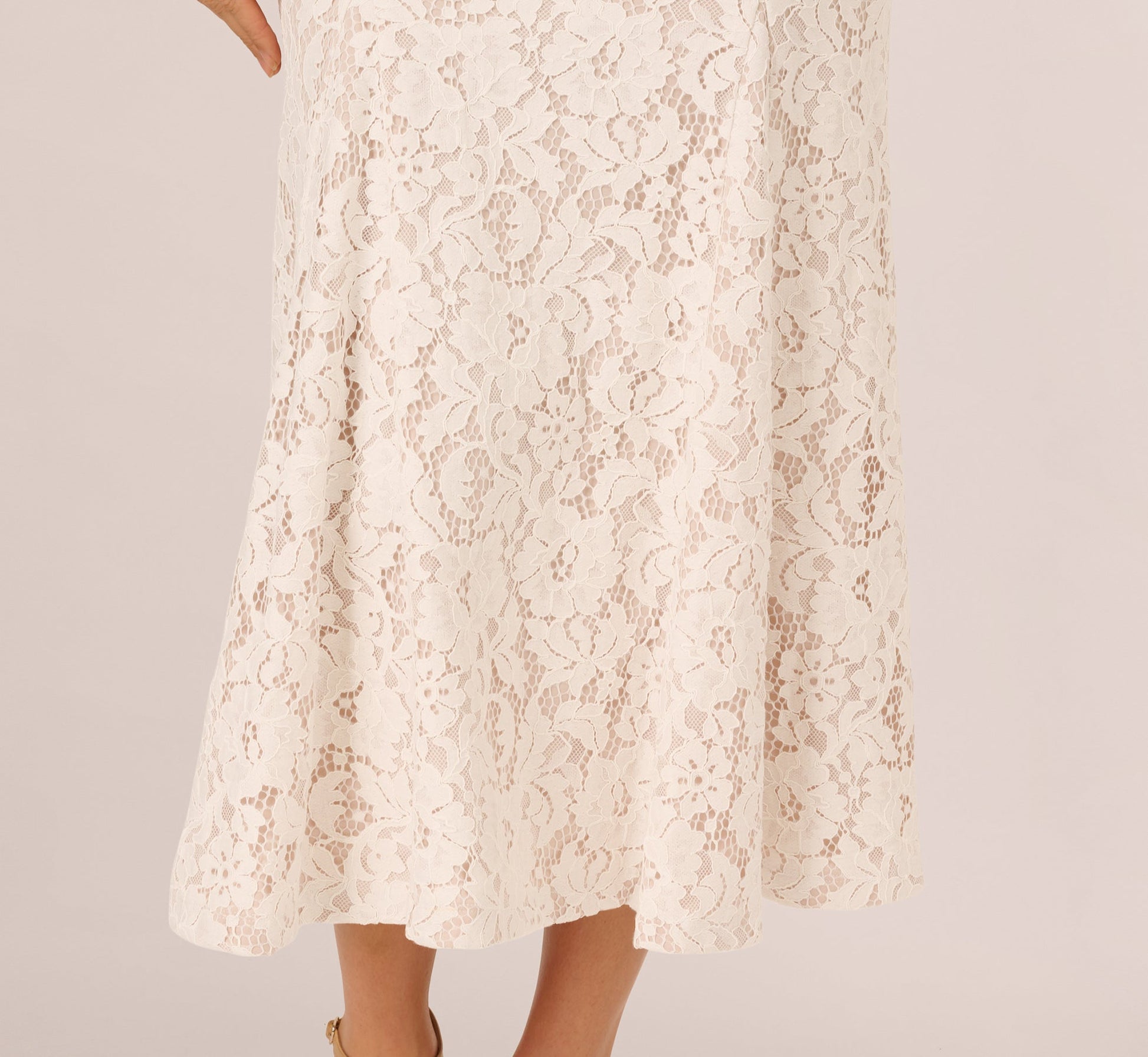 Cap Sleeve Lace Midi Dress In Ivory Nude