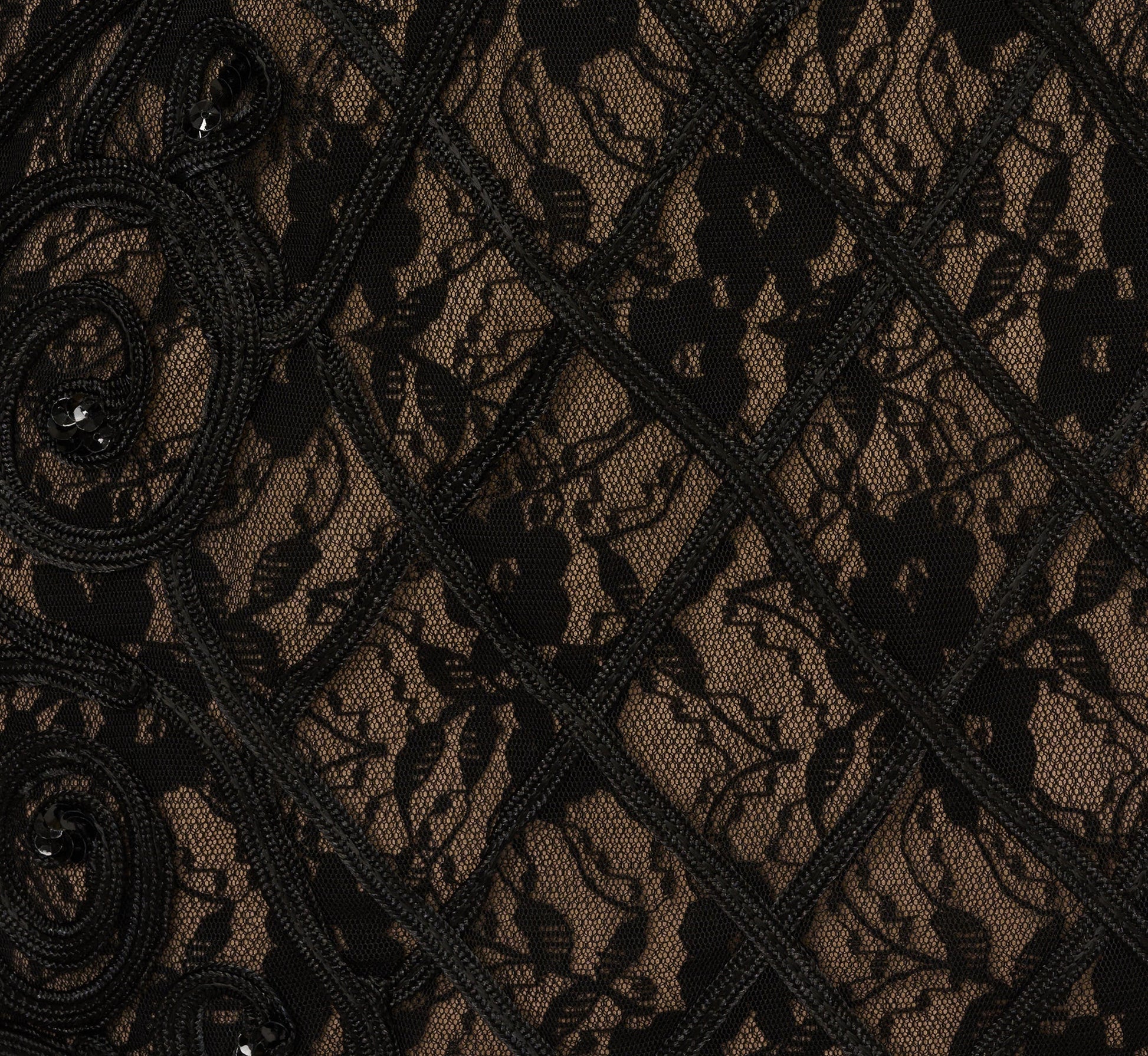 Cap Sleeve Soutache Lace Beaded Midi Dress In Black Nude