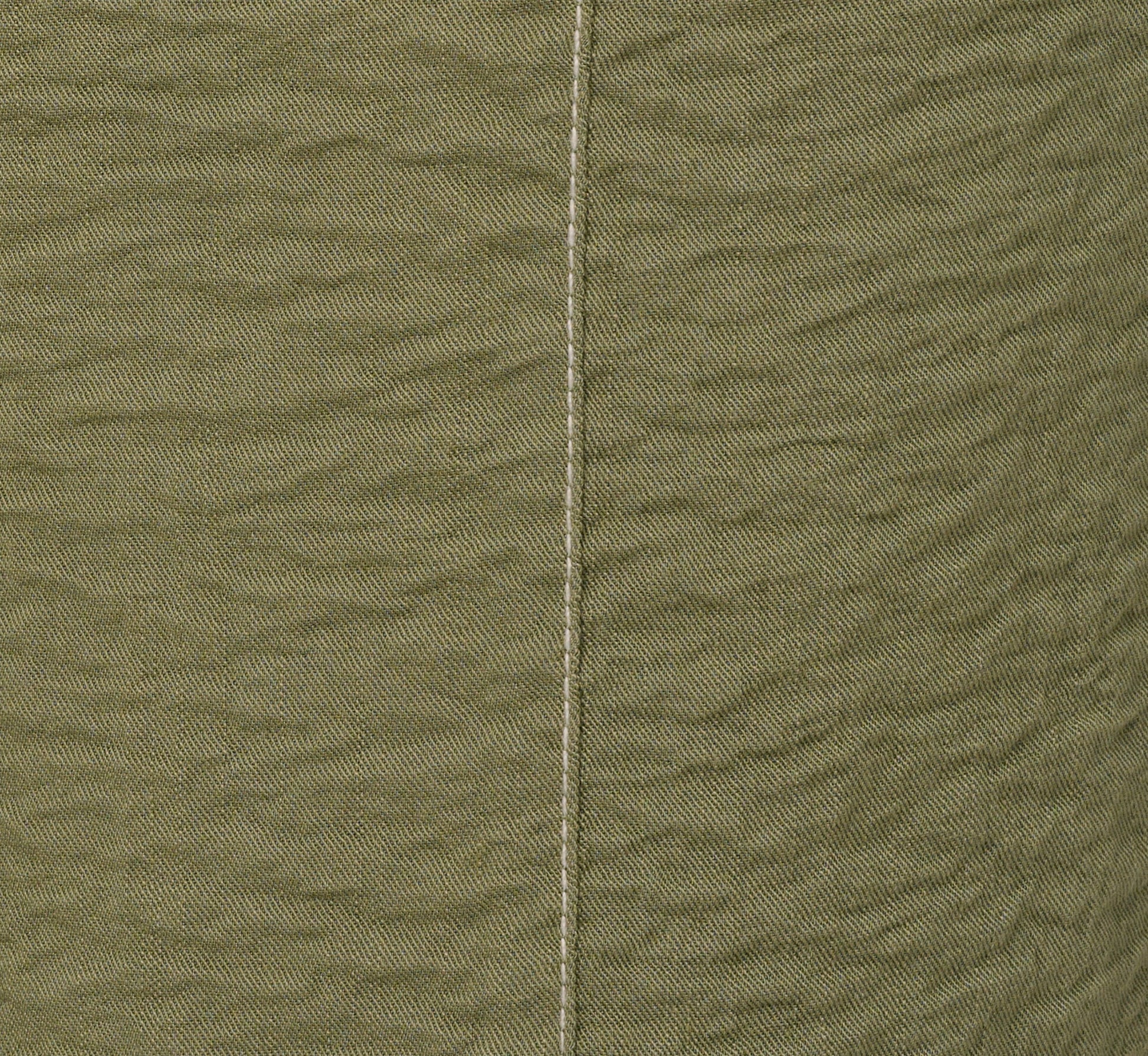Contrast Stitching Crinkle Midi Pant In Oil Green Ivory