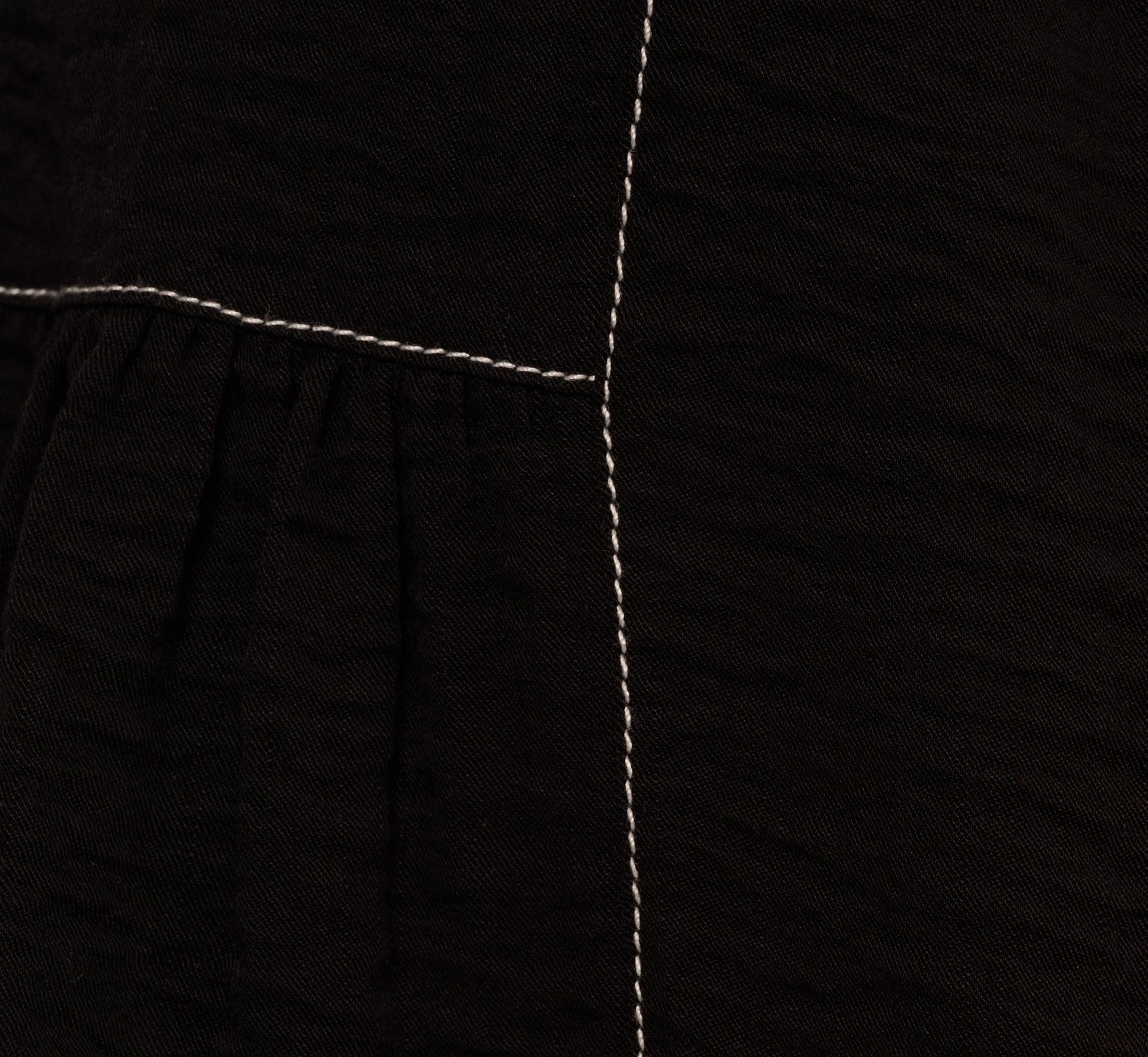 Extended Shoulder Contrast Stitch Yoke Top In Black Ivory