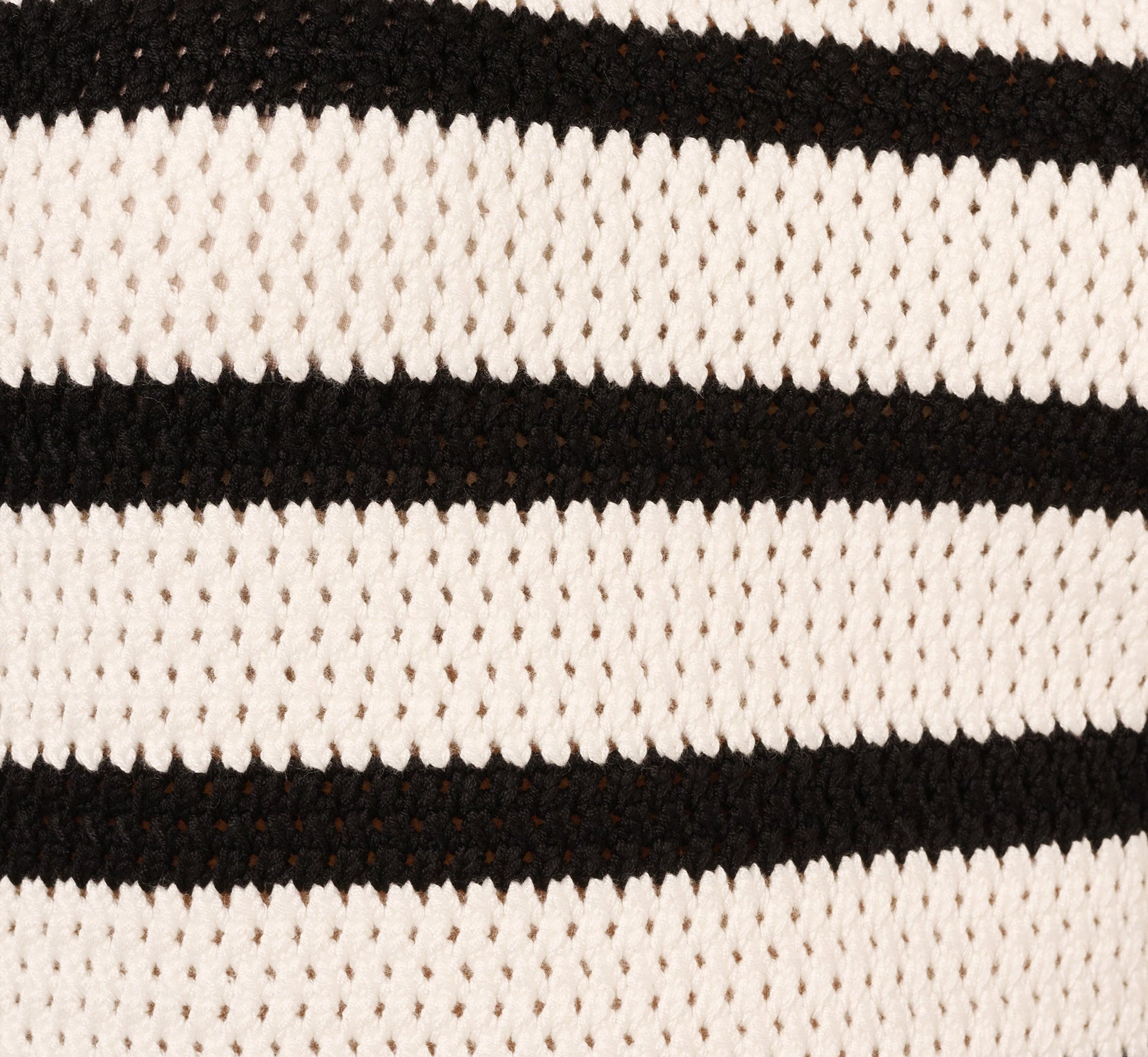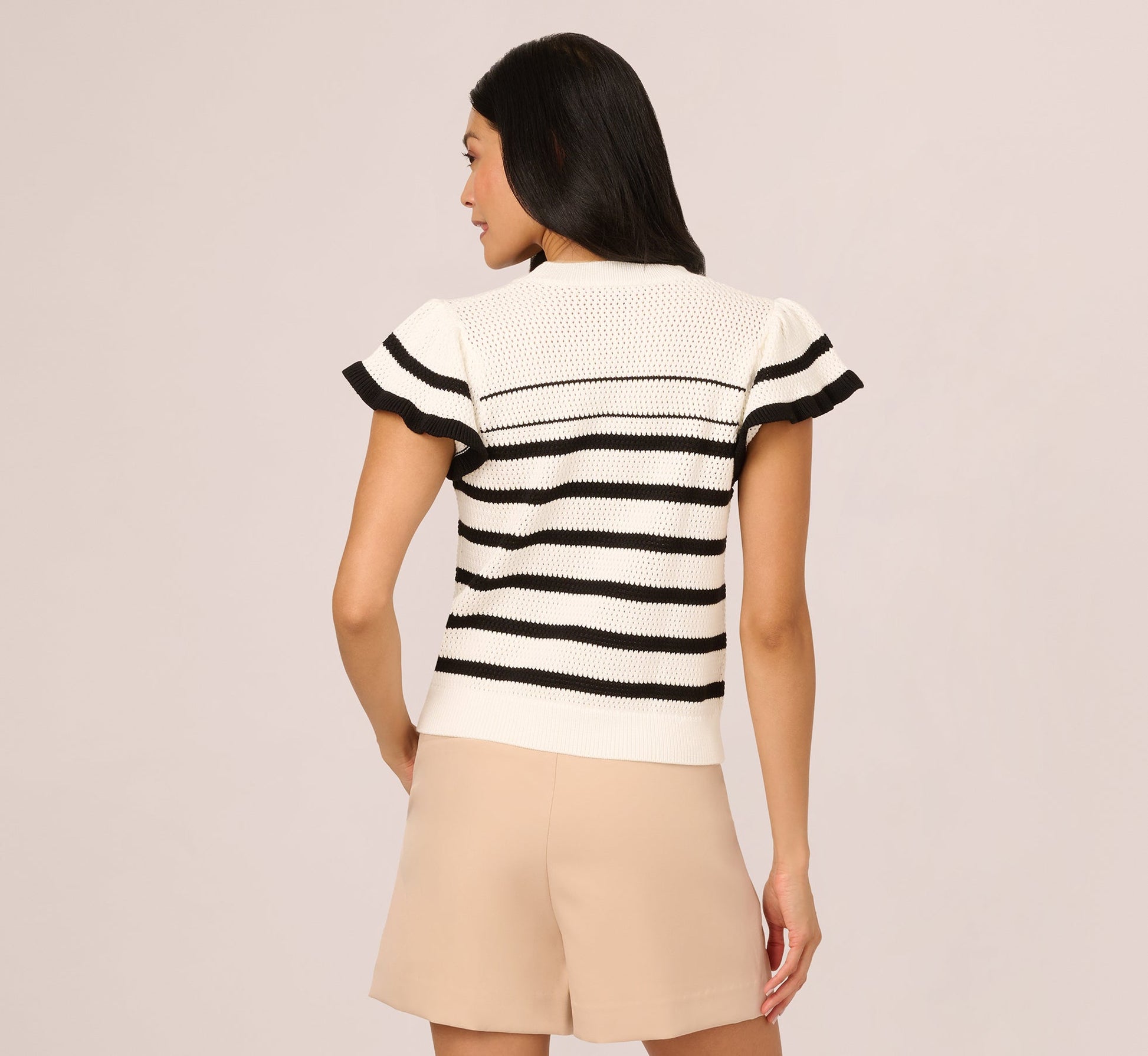 Flounce Sleeve Open Knit Sweater Top In Ivory Black