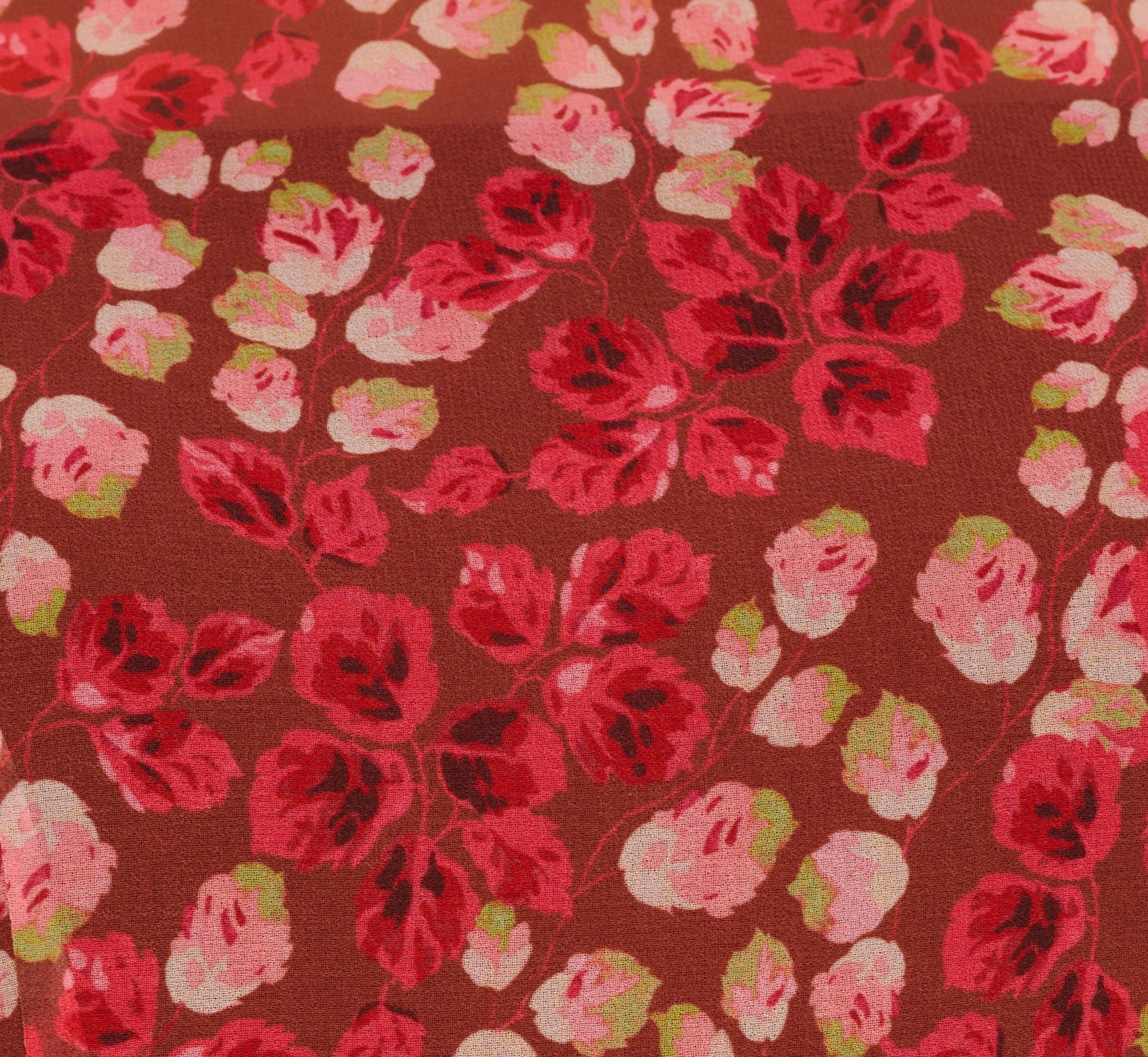 Flutter Sleeve Boat Neck Floral Chiffon Midi Dress In Mocha Multi