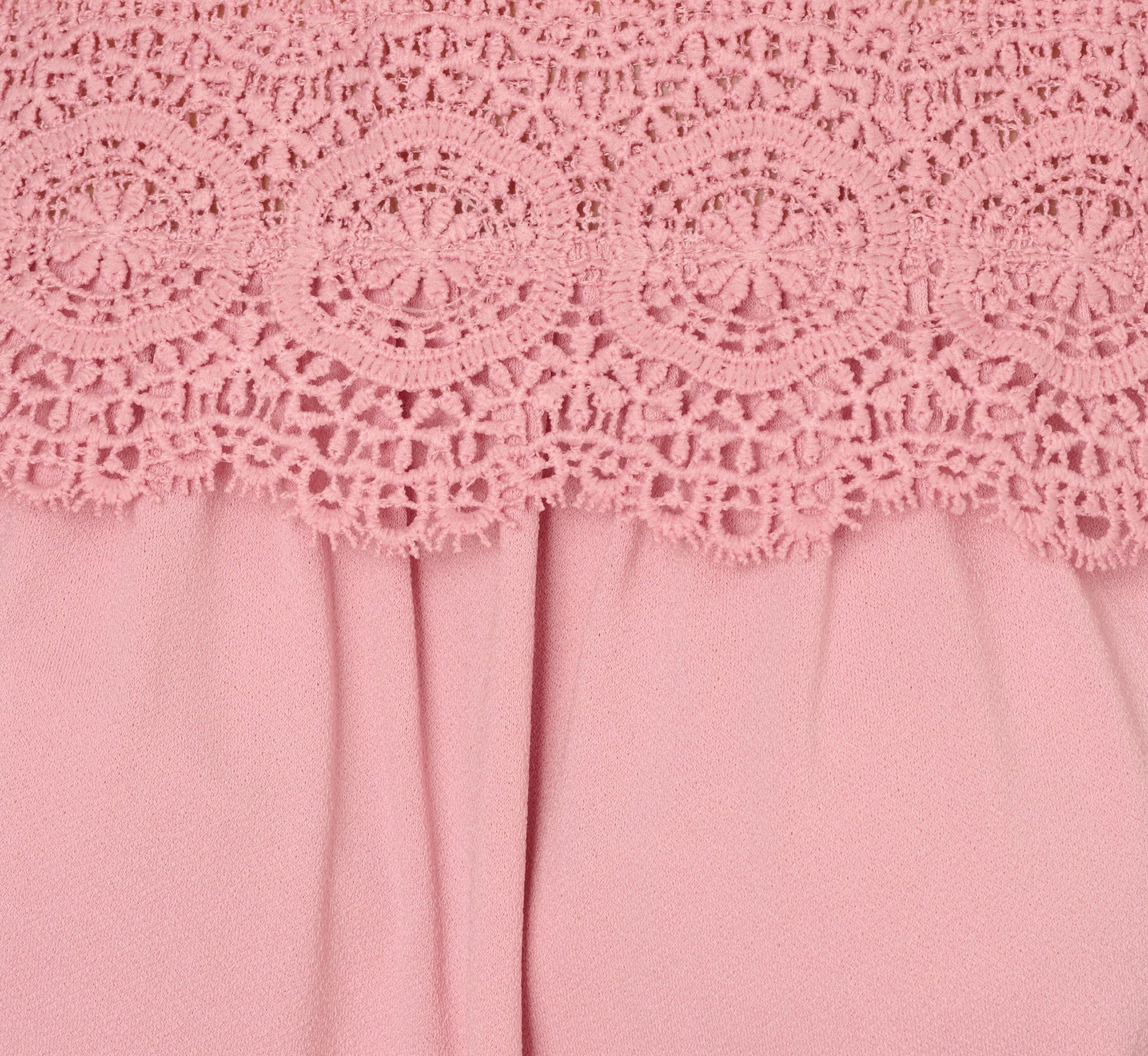 Flutter Sleeve Lace Yoke Trapeze Top In Pink Nectar