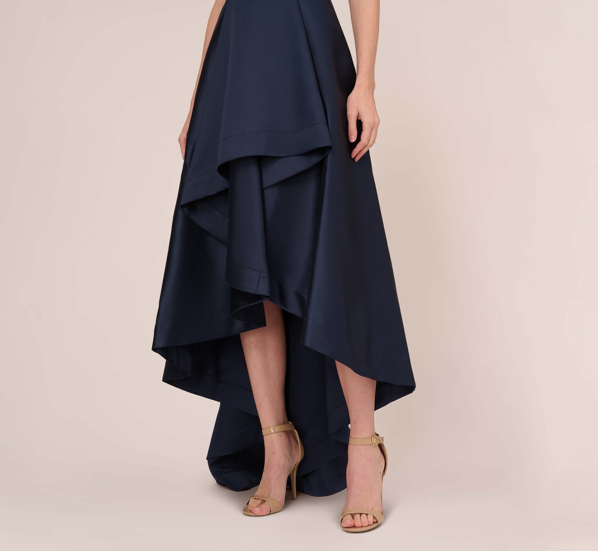 High Low Mikado Gown With Asymmetrical Detail In Midnight
