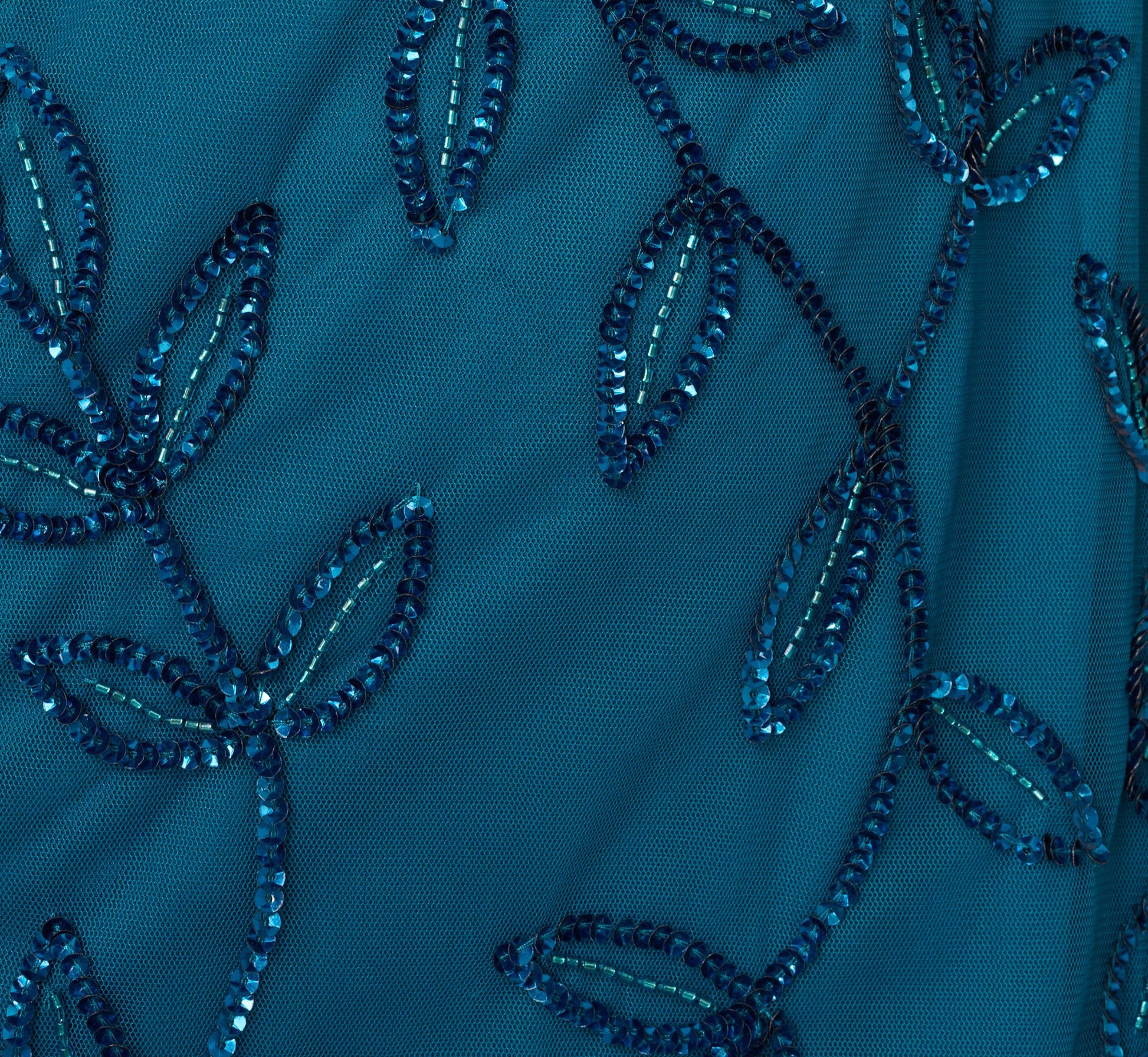Jasmine Beaded Blouson Gown With Sheer Short Sleeves In Teal Sapphire