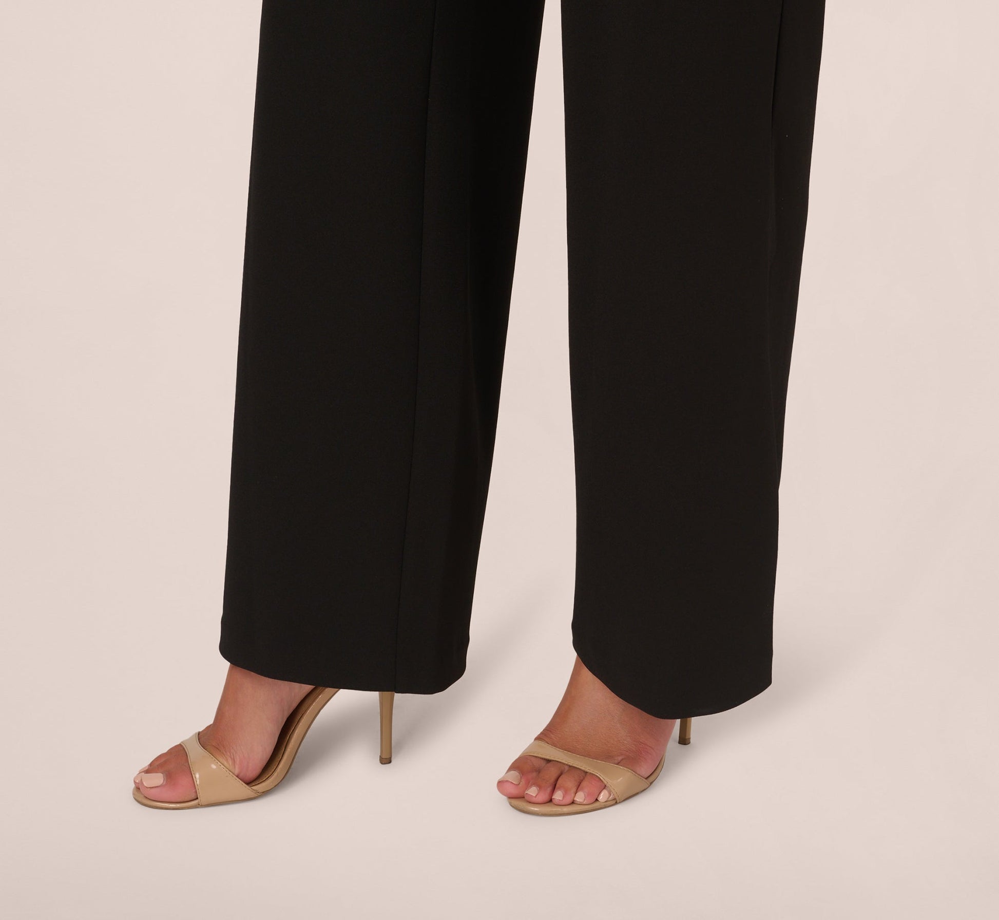 Knit Crepe Wide Leg Jumpsuit With Bell Sleeves In Black