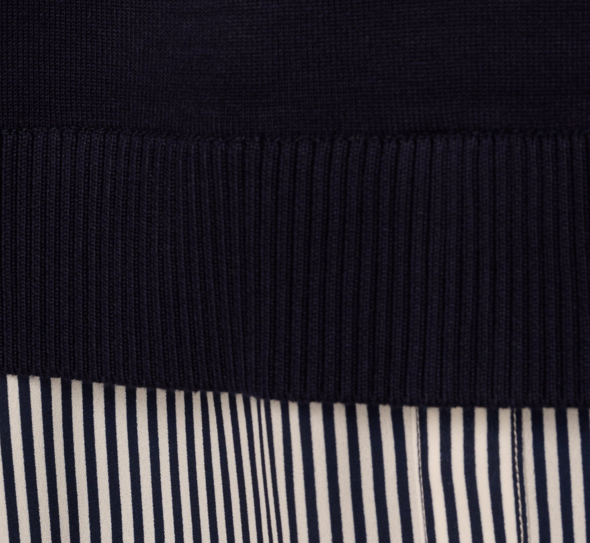 Long Sleeve Collared Printed Twover Sweater In Navy W Navy Small Stripe