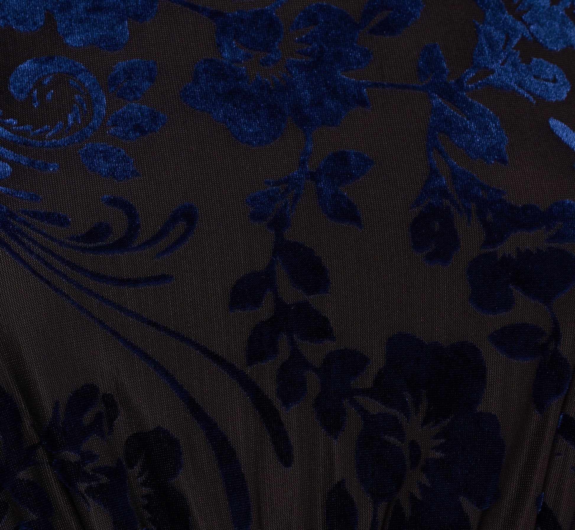 Long Sleeve Floral Velvet Burnout Midi Dress In Light Navy