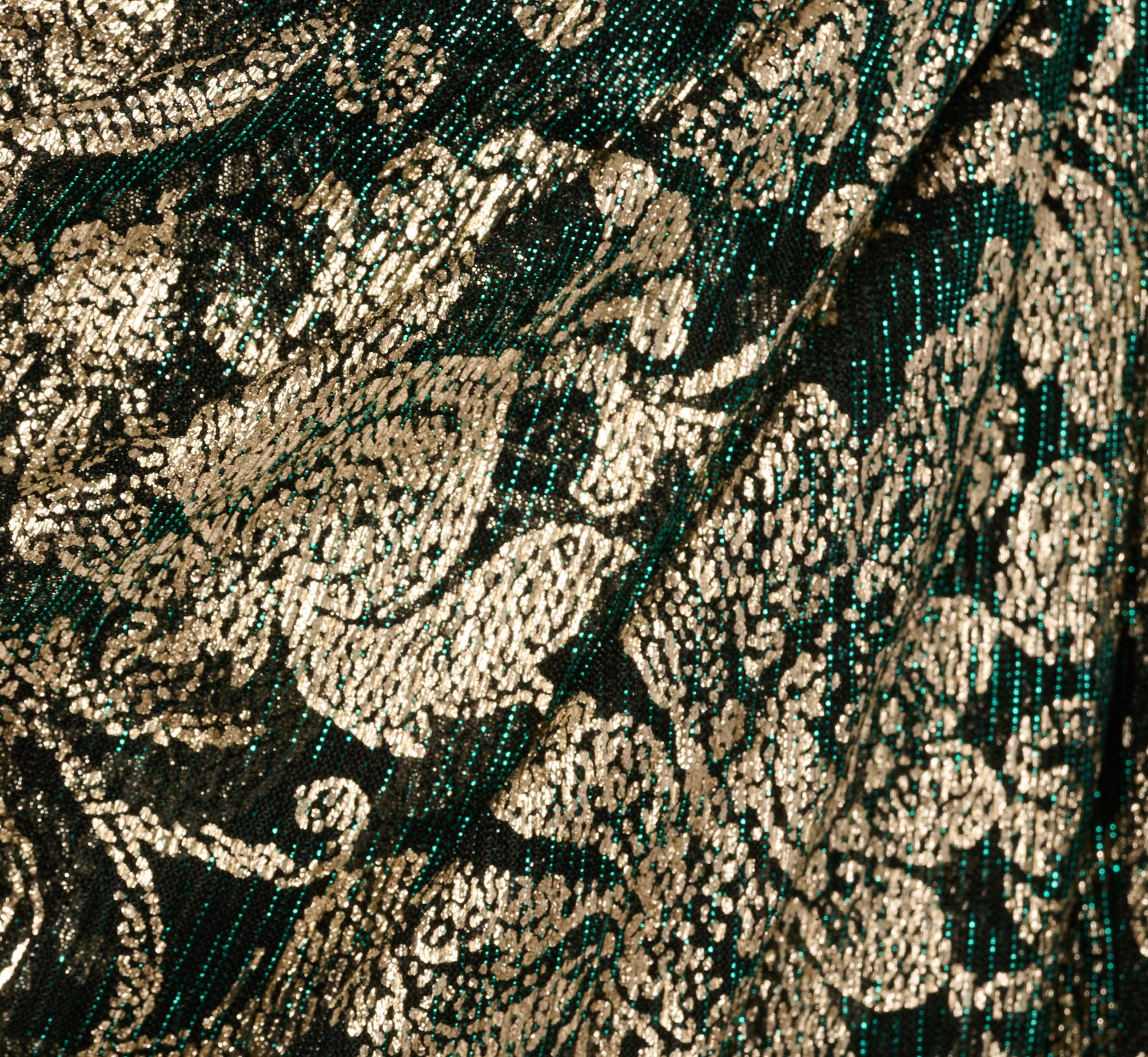 Long Sleeve Metallic Sheath Dress In Green Gold