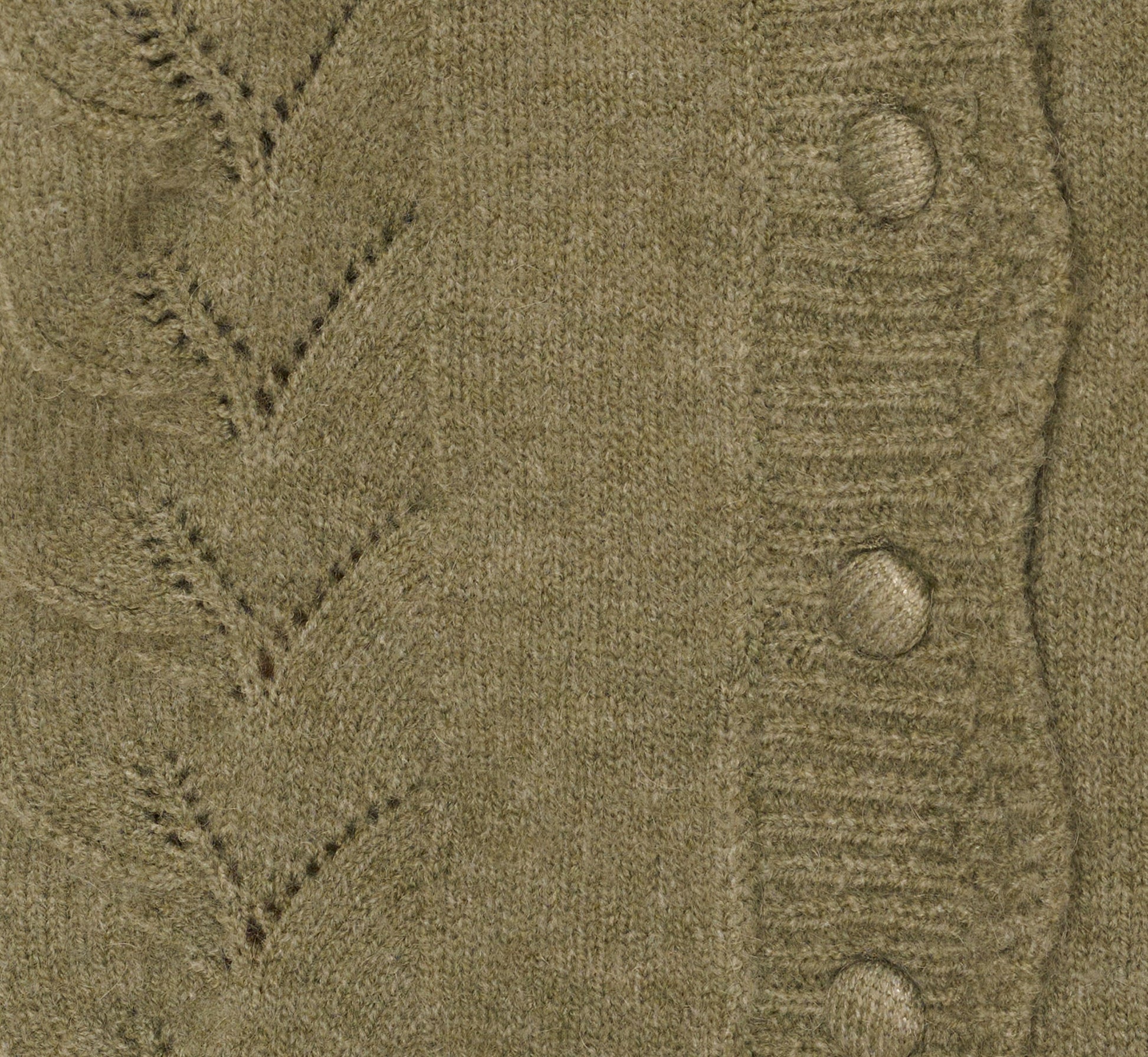 Long Sleeve Scalloped Pointelle Cardigan Sweater In Evergreen Fog