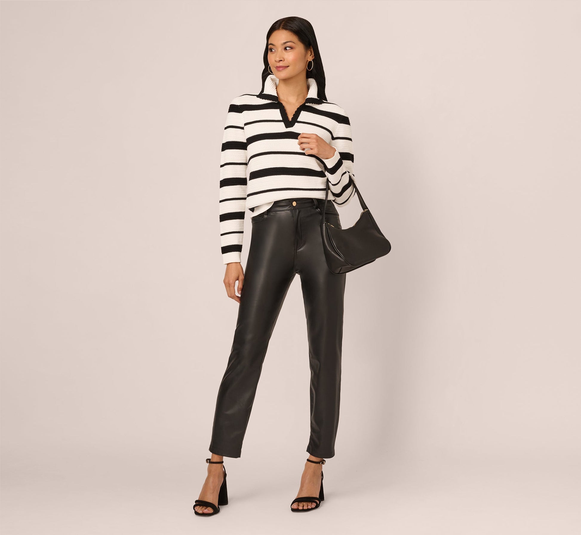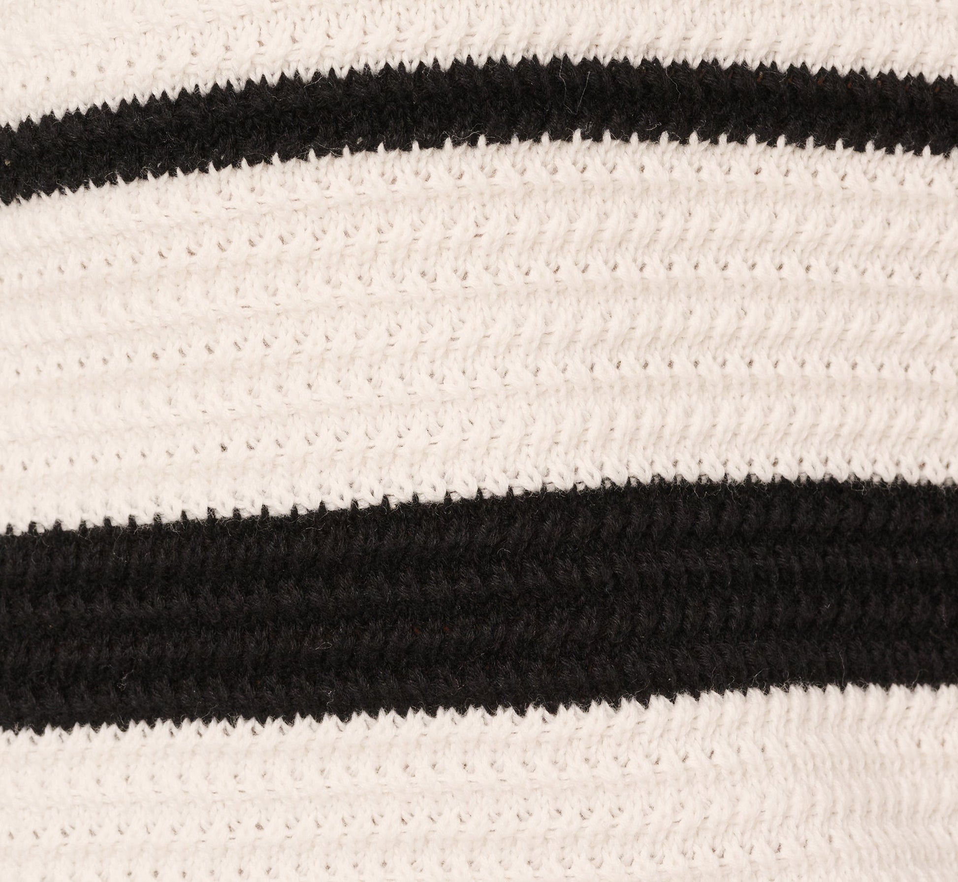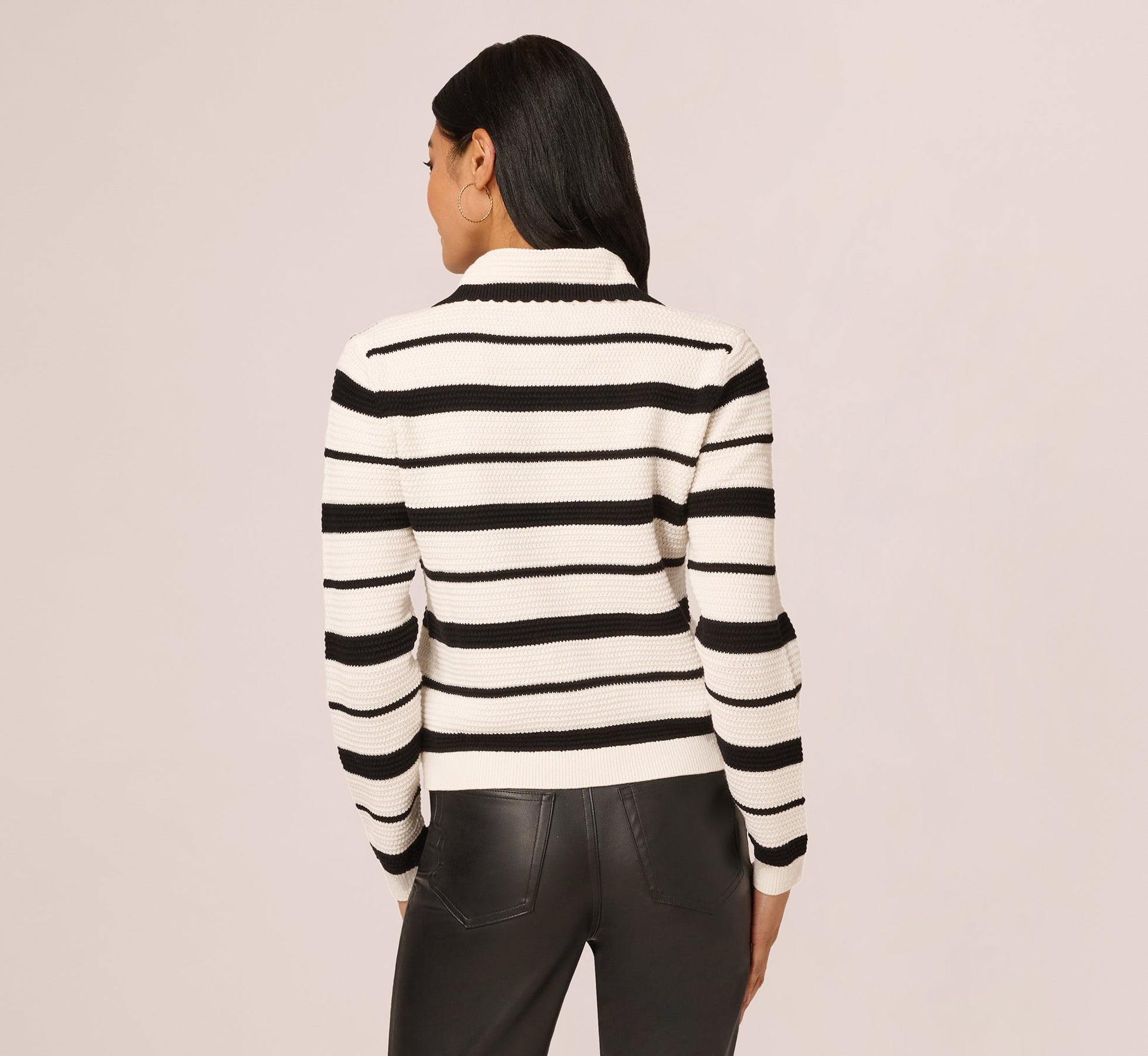 Long Sleeve Striped Polo Sweater Top In Ivory Black