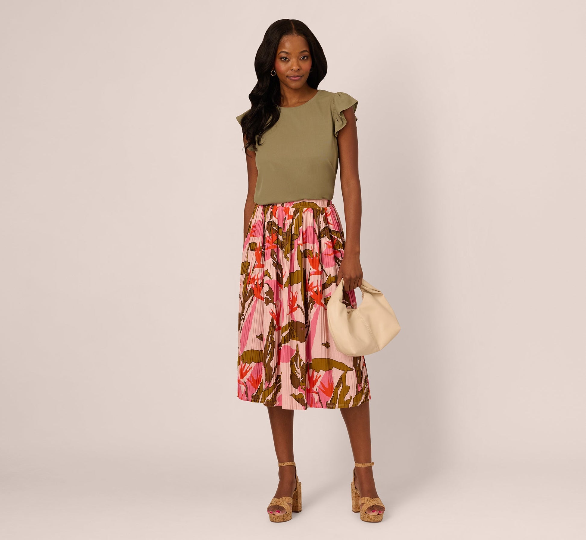 A botanical inspired print and fine vertical pleating gives this midi skirt dimension and texture. Perfect for mixing and matching, you'll love the versatility this knit skirt offers. With a super comfortable elastic waistband, this pull on design will be your new favorite for long days at the office or sunny Saturdays out on the town.