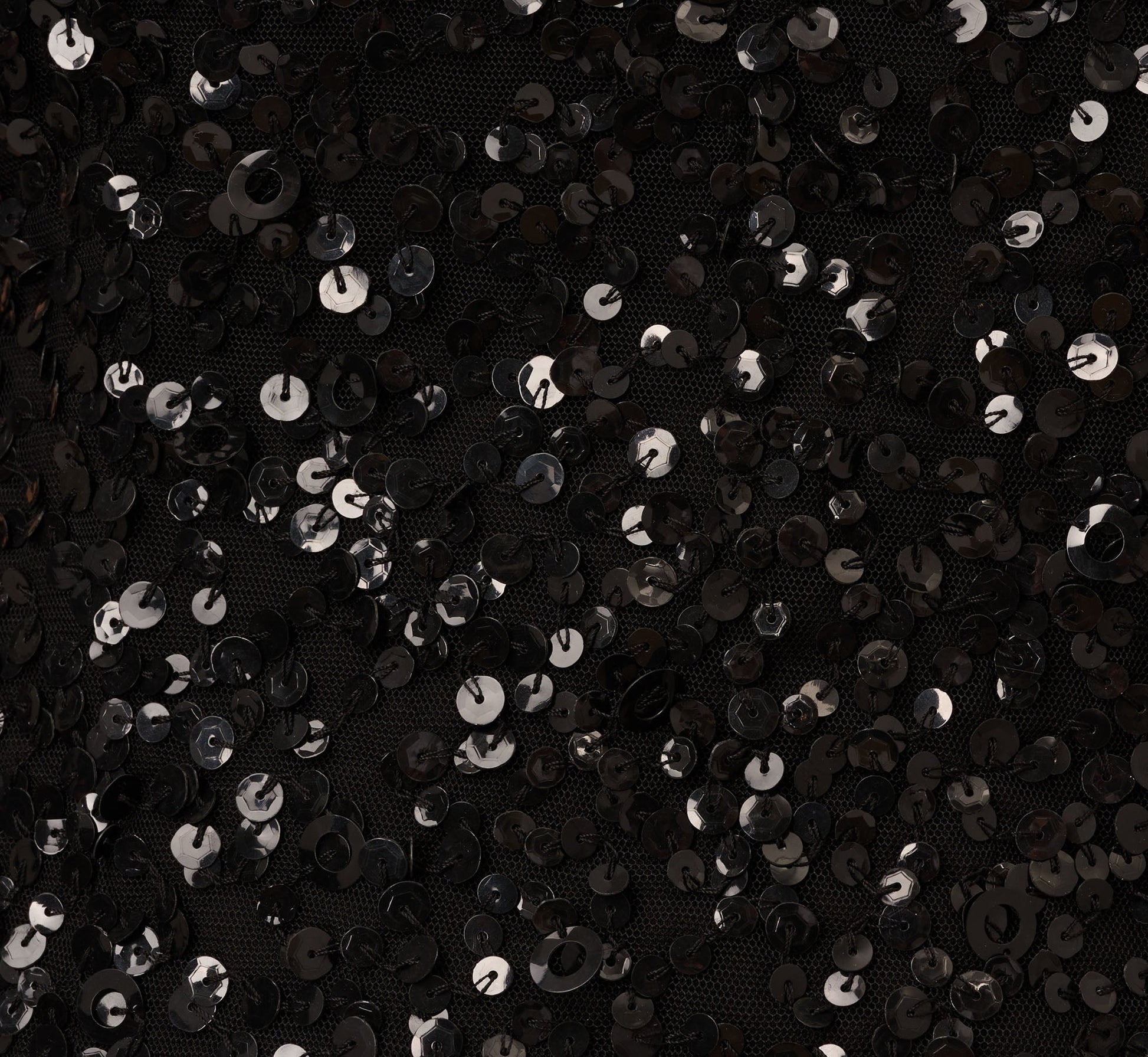 Beautiful all over sequin beading shines on this pretty evening gown. This formal dress features an off the shoulder neckline, a fitted bodice, a no seam waist (so flattering) and a soft, long skirt with slightly flared hem and a modified train. Paired with peep toe pumps, this sparkling dress is complete.