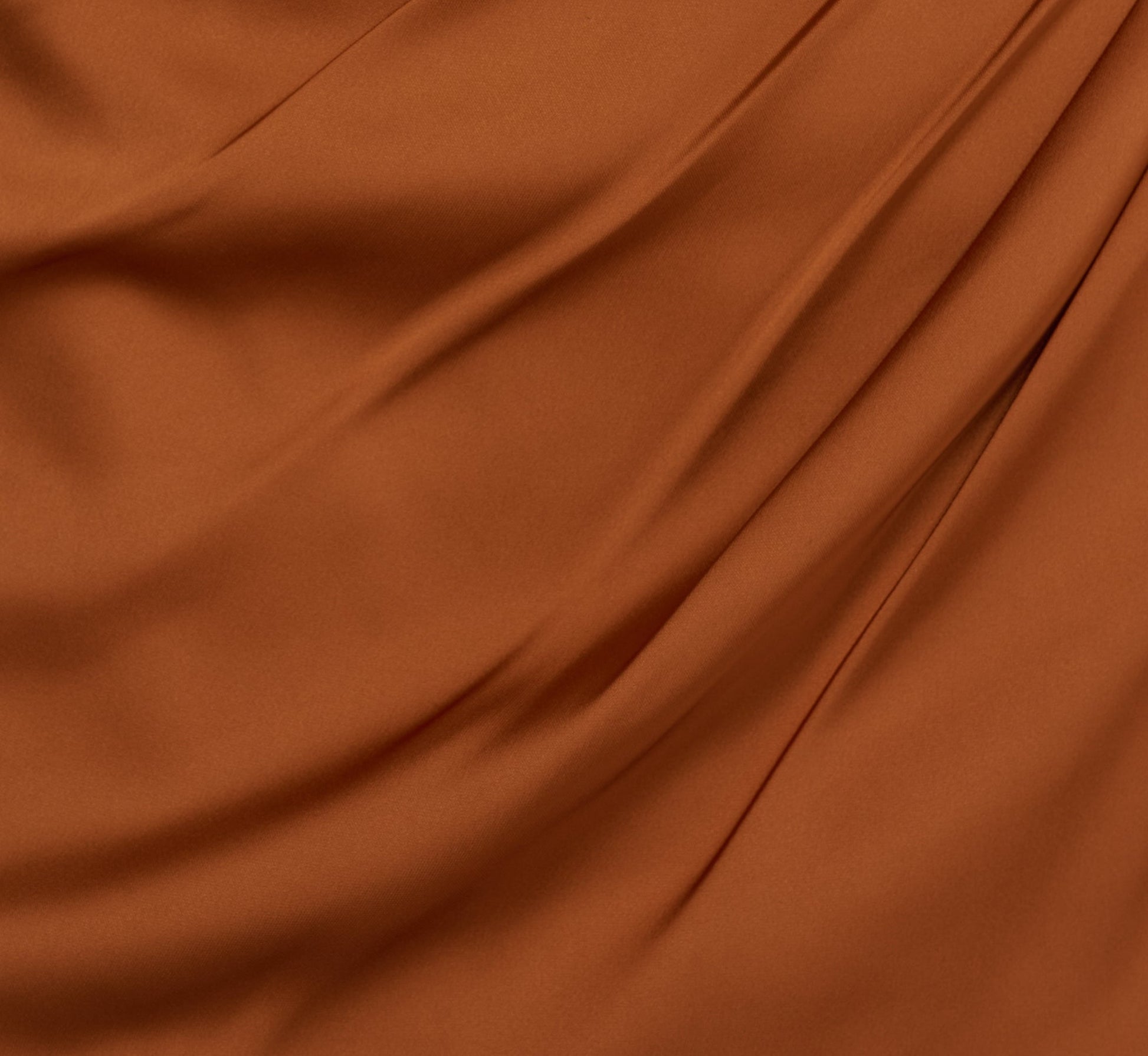 This sleek satin gown creates subtle dimension with elegant draped details. The spaghetti strap one shoulder neckline is balanced with a sleek faux wrap skirt, creating a classic column silhouette. Ruched details along the bodice side seam add draped texture and a defined waist. A side zipper ensures the perfect fit. Wear the ultimate in modern elegance to your next formal event with this stunning asymmetrical evening gown.