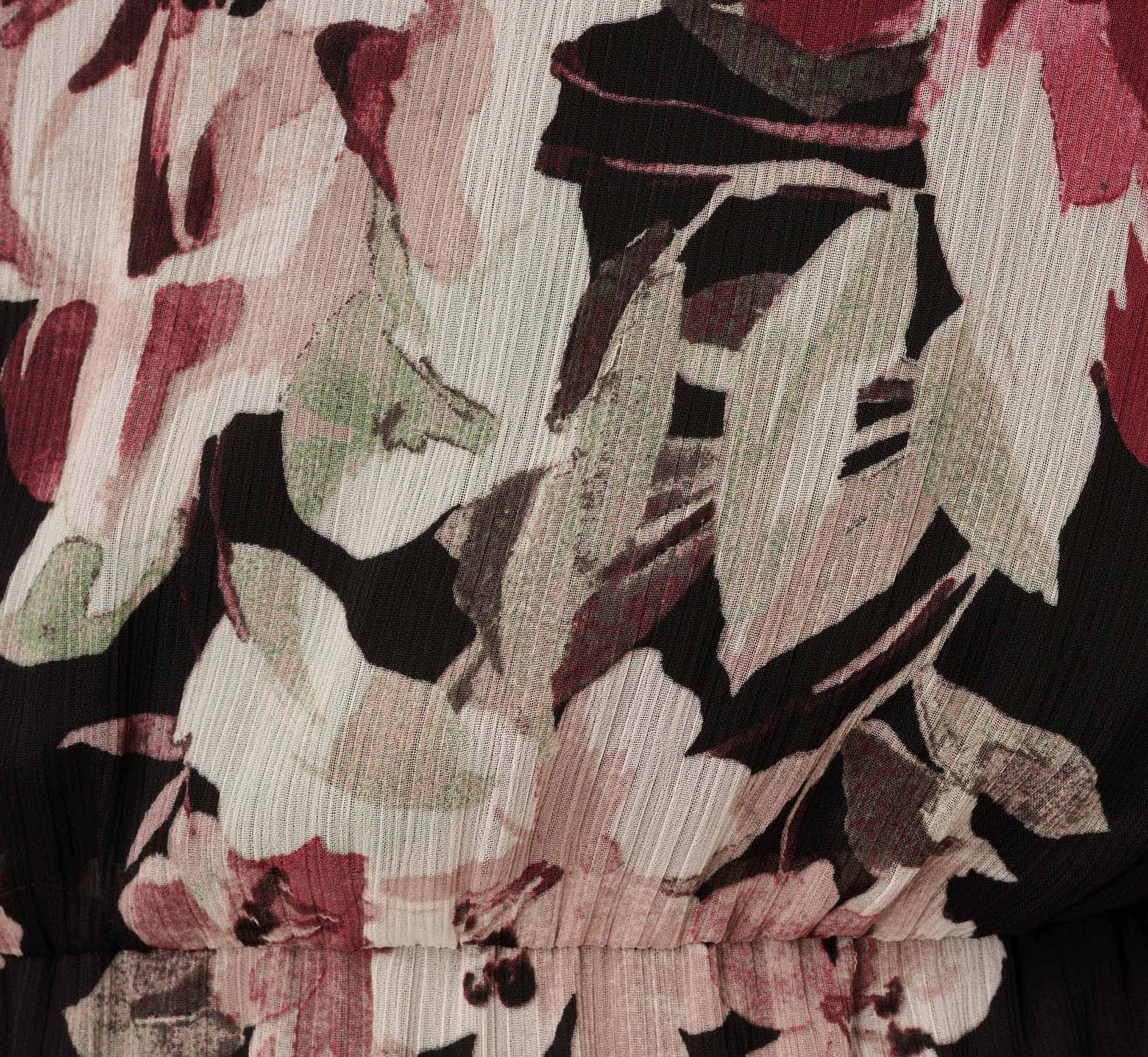 Plus Size Floral Chiffon Dress With Three Quarter Length Sleeves In Black Multi