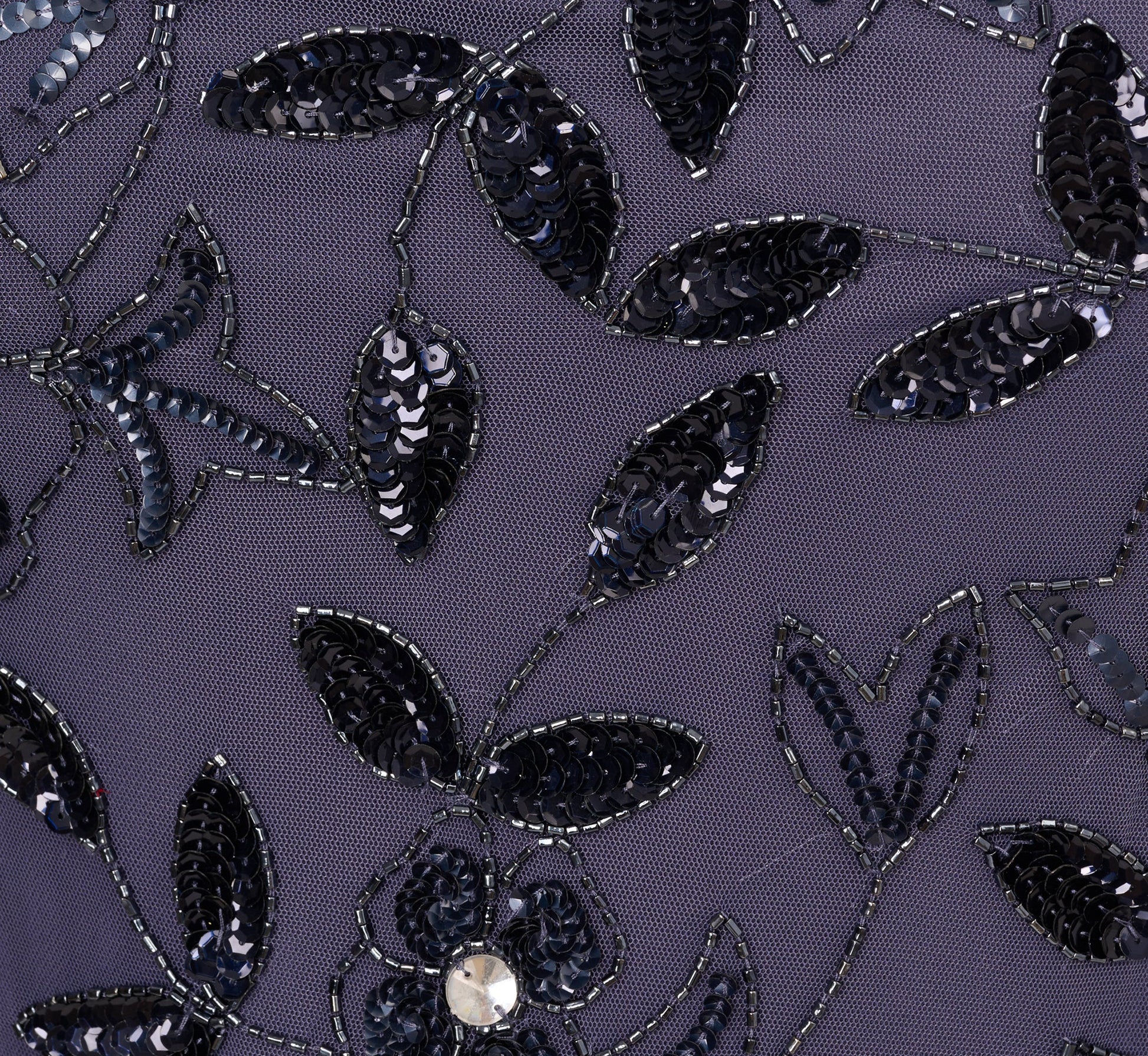 Plus Size Hand Beaded Short Sleeve Floral Godet Gown In Smoky Peri