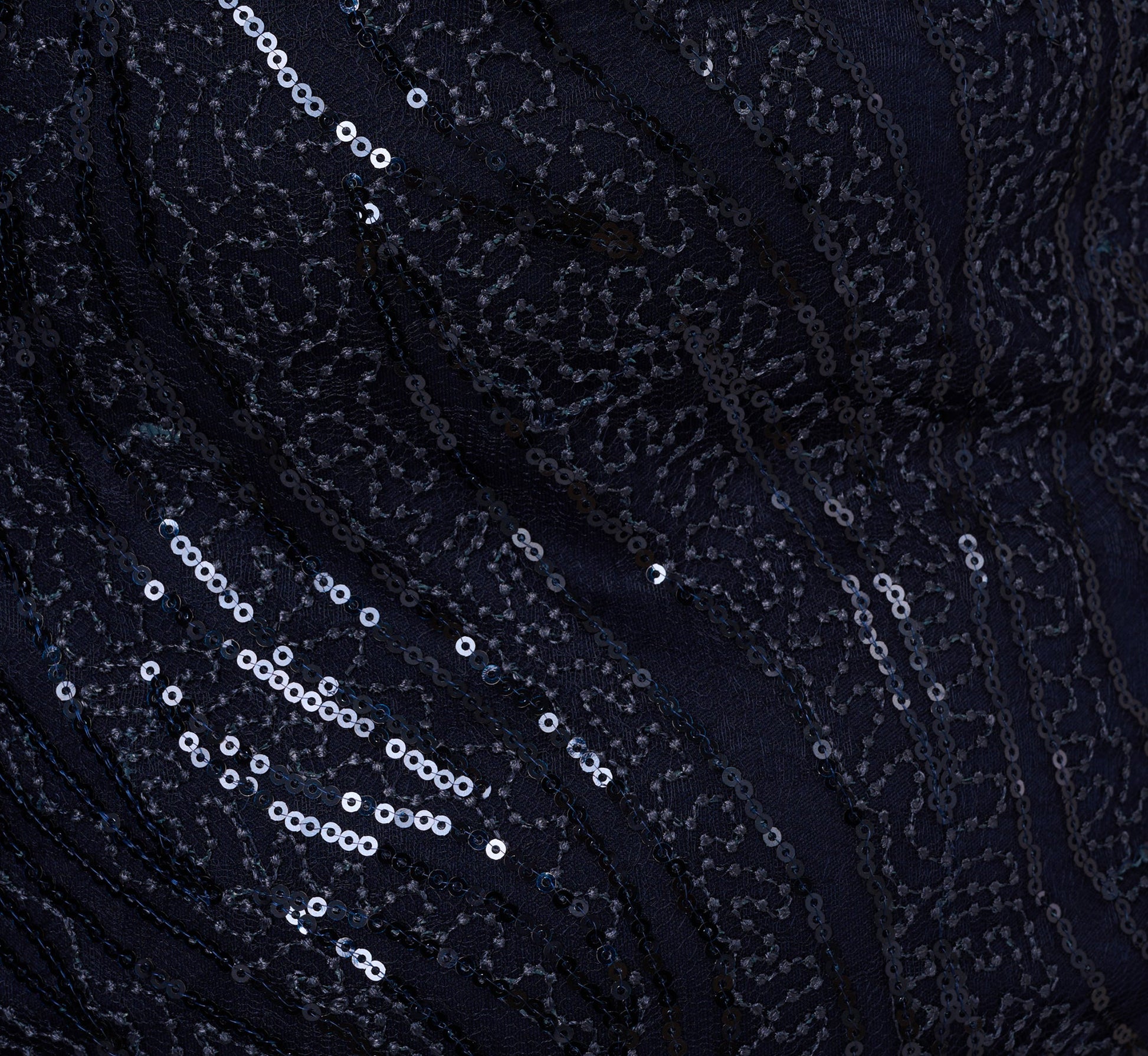 Plus Size Sequin Embroidered Dress With Taffeta Bell Sleeves In Midnight