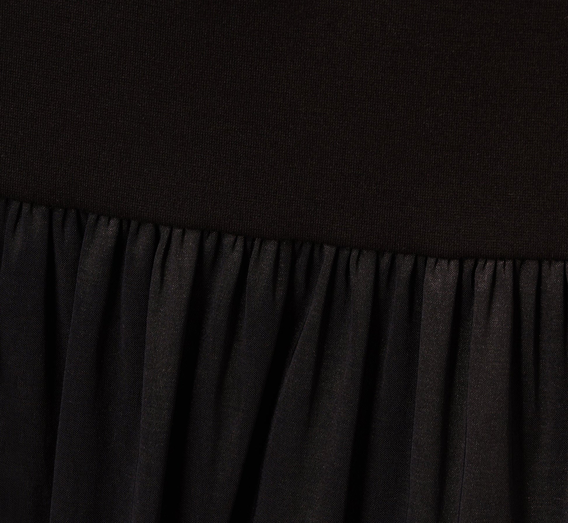Ponte Taffeta Drop Waist Flounce Dress In Black
