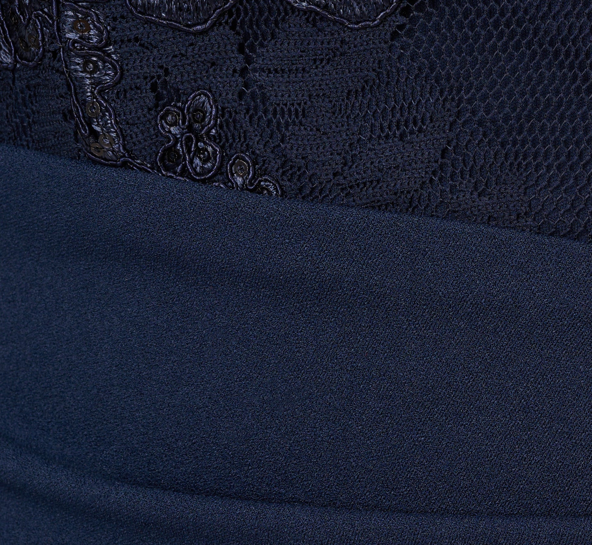Sequin infused lace is just one detail that makes this sheath dress special. This party dress features a sheer lace bodice with boat neckline, sheer three-quarter bell sleeves, and a midi-length skirt with pleat details at the waist. Crafted from knit crepe fabric throughout, this three-quarter sleeve dress is overlaid at the bodice with lace embroidered with sequin florals. A sheer v-back and center zipper closure completes this cocktail dress. Pair this semi-formal dress with nude heels and a beaded clutch before dancing the night away.