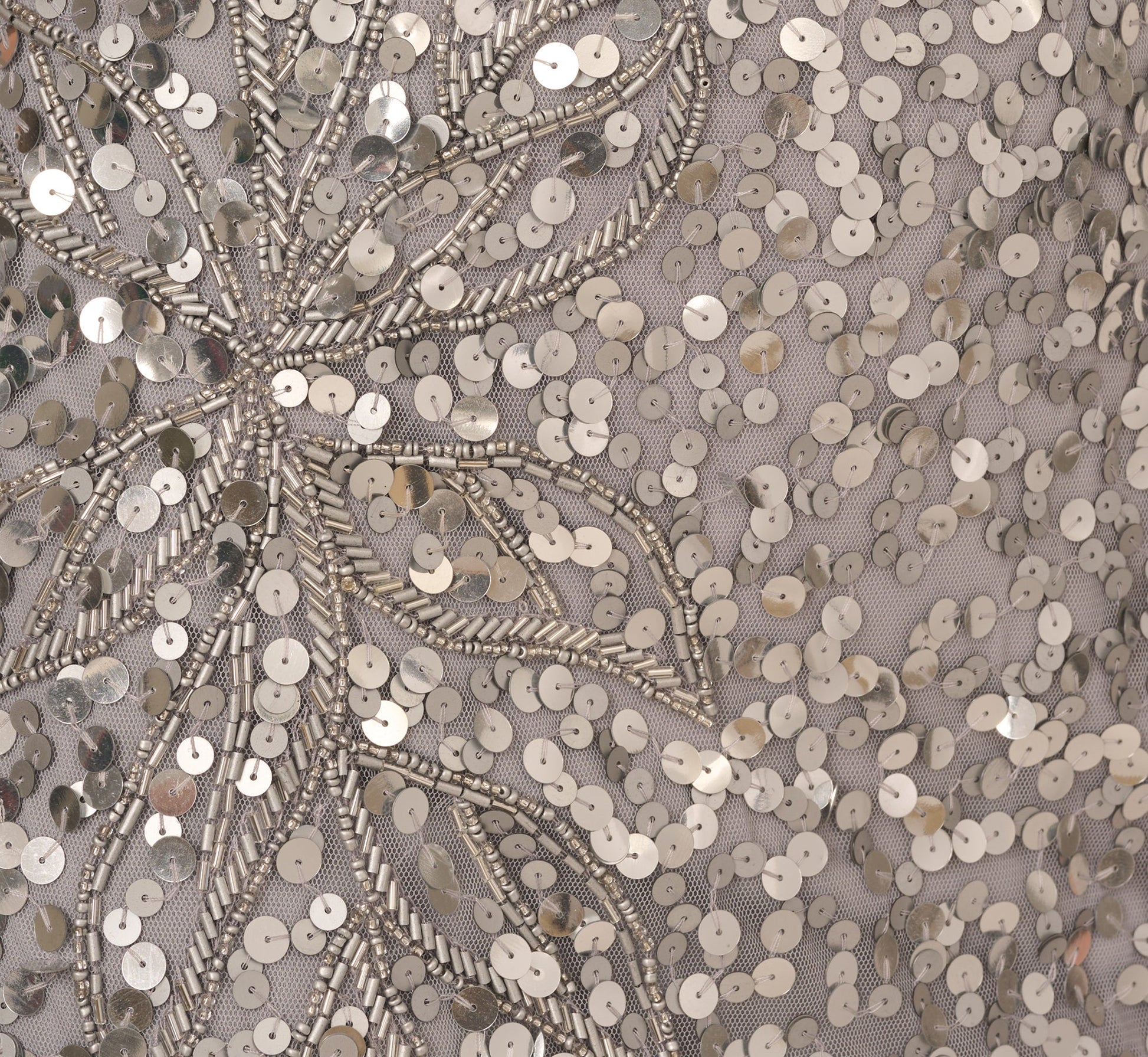 Short Sleeve Bead And Sequin Gown In Silver Mist