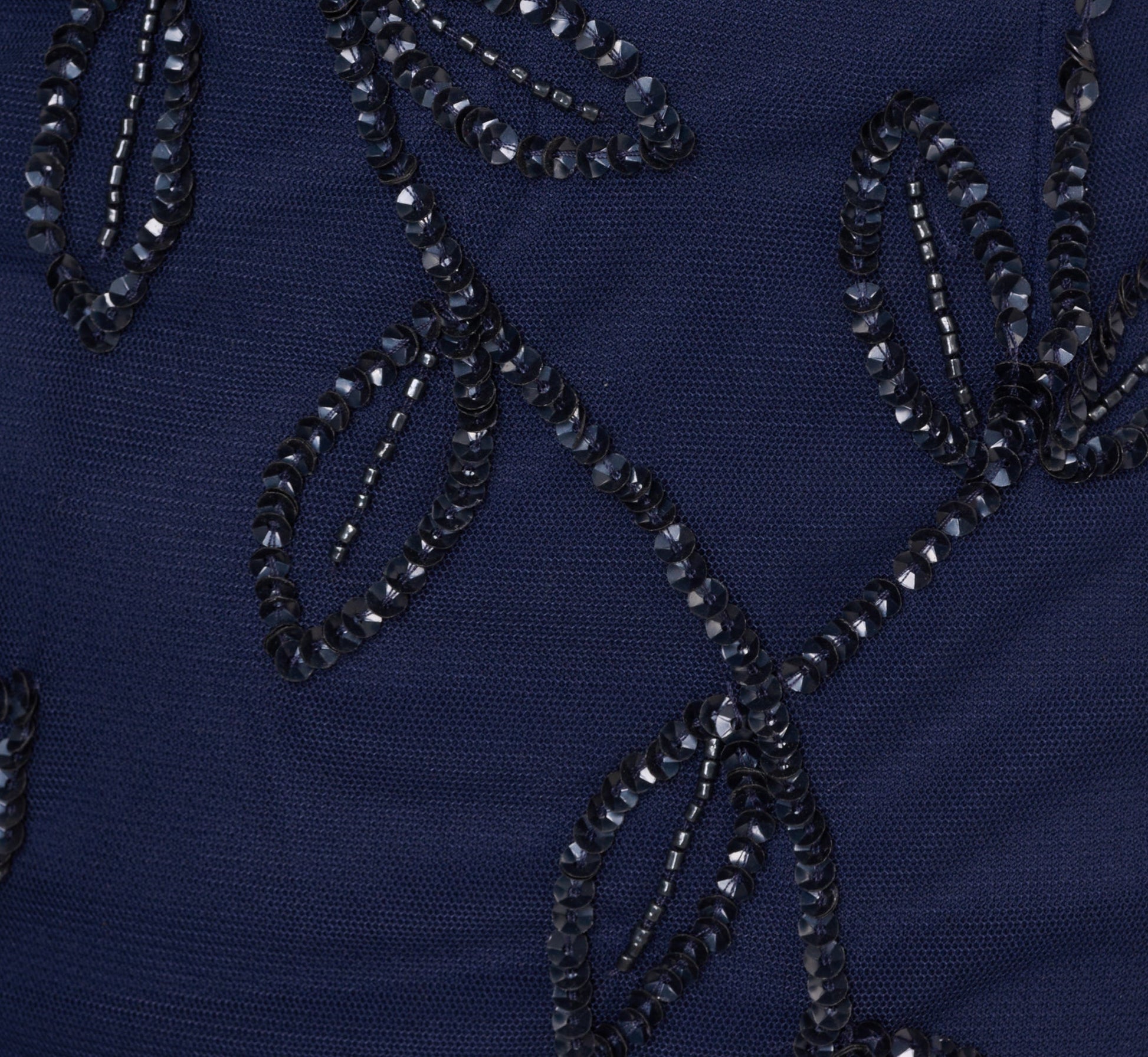 Sleeveless Blouson Mermaid Gown With Jasmine Beading In Light Navy
