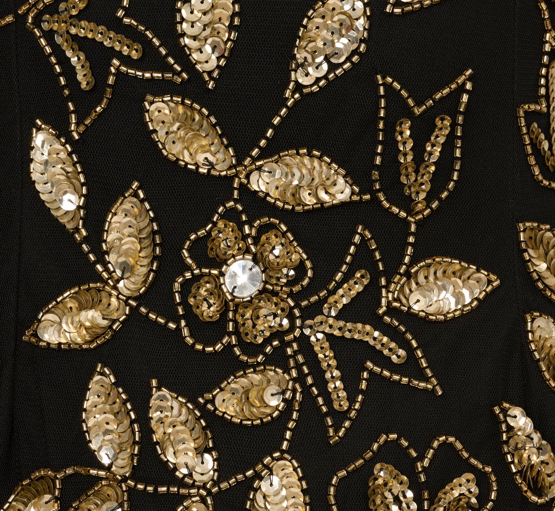 Sleeveless Floral Beaded Godet Gown In Black Gold