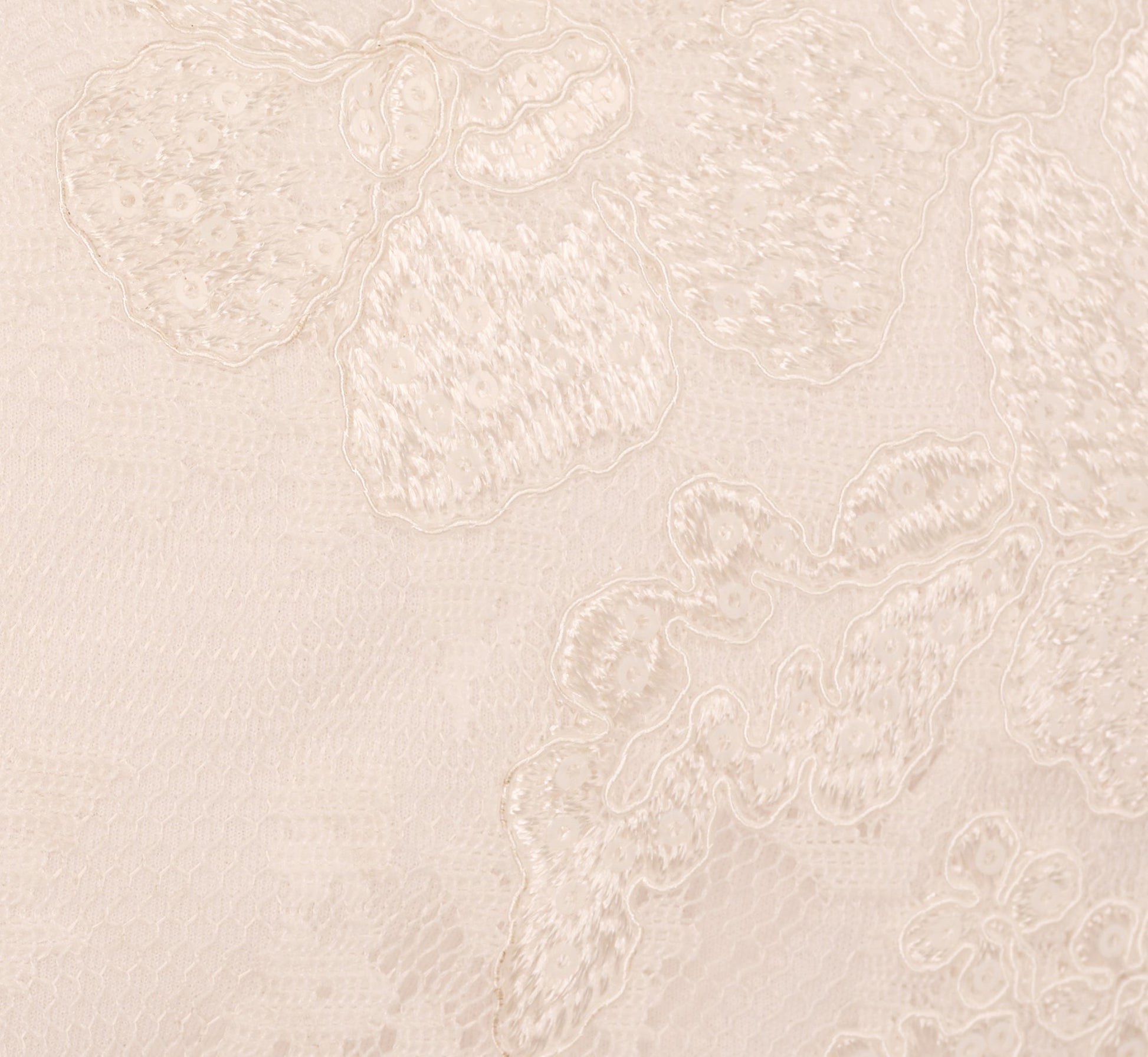 Sleeveless Floral Lace Dress With Feather Trim In Ivory