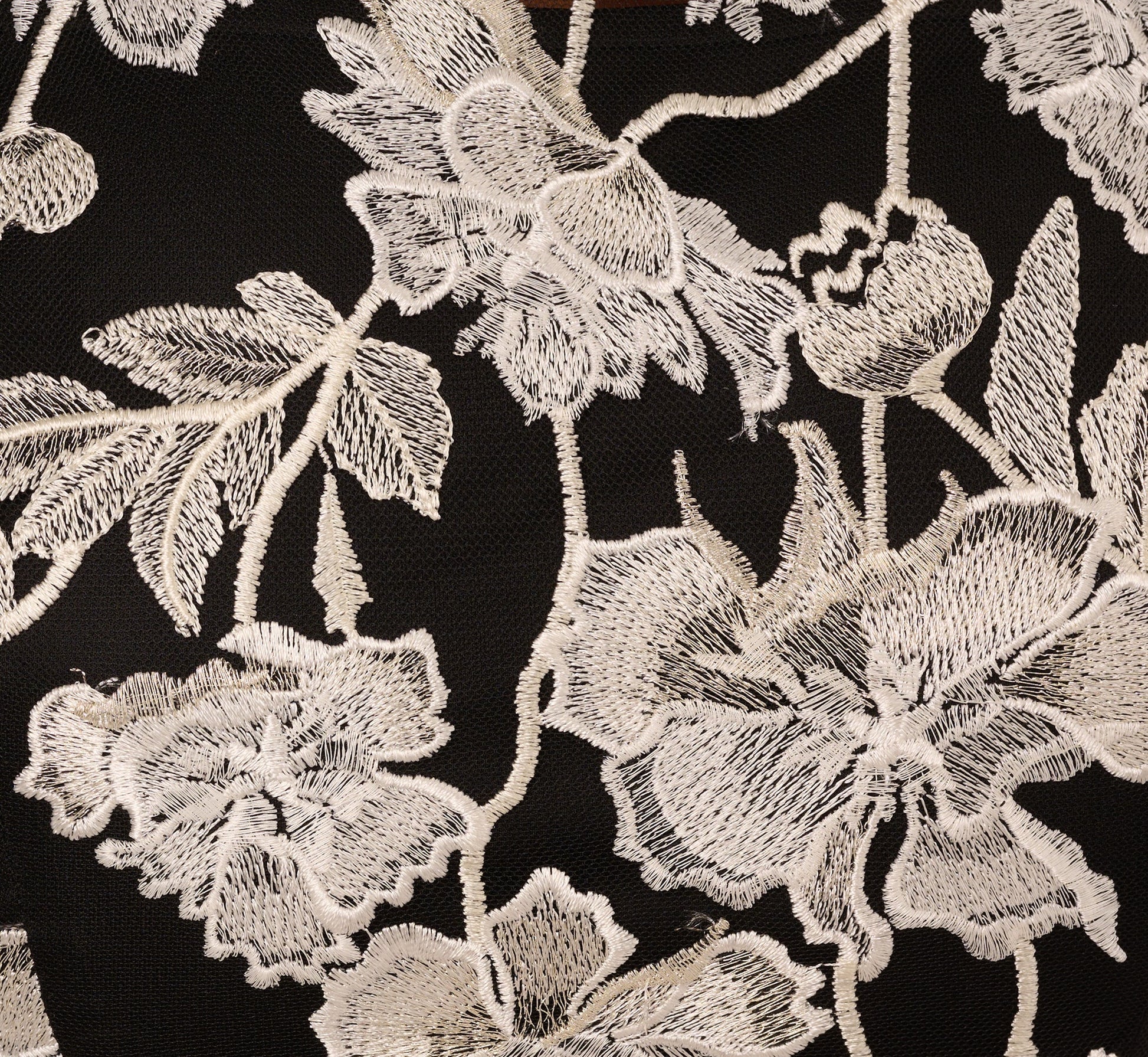 Sleeveless Illusion Floral Embroidery Sheath Dress In Black Ivory