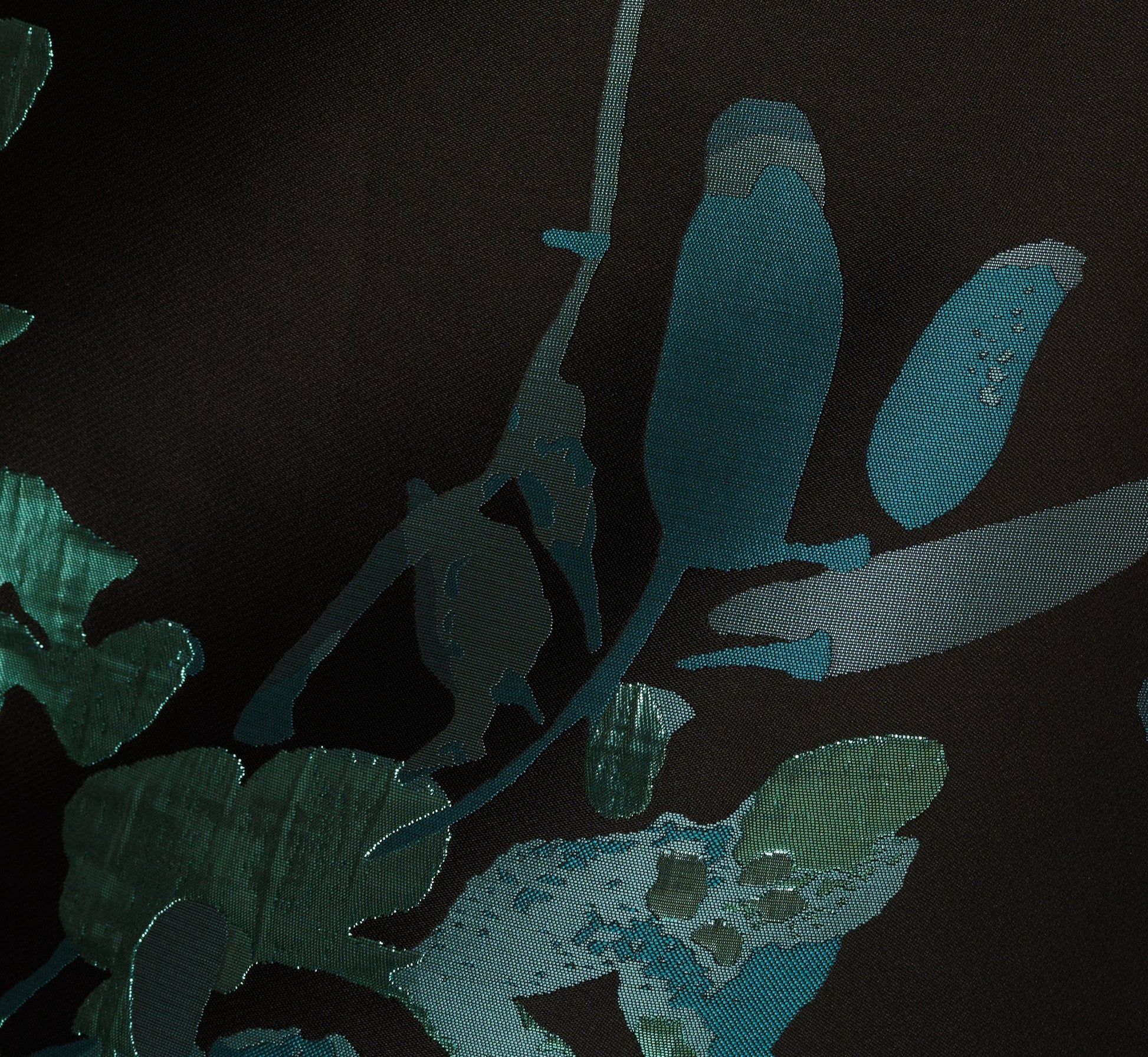 Sleeveless Metallic Floral Jacquard Gown In Black Teal