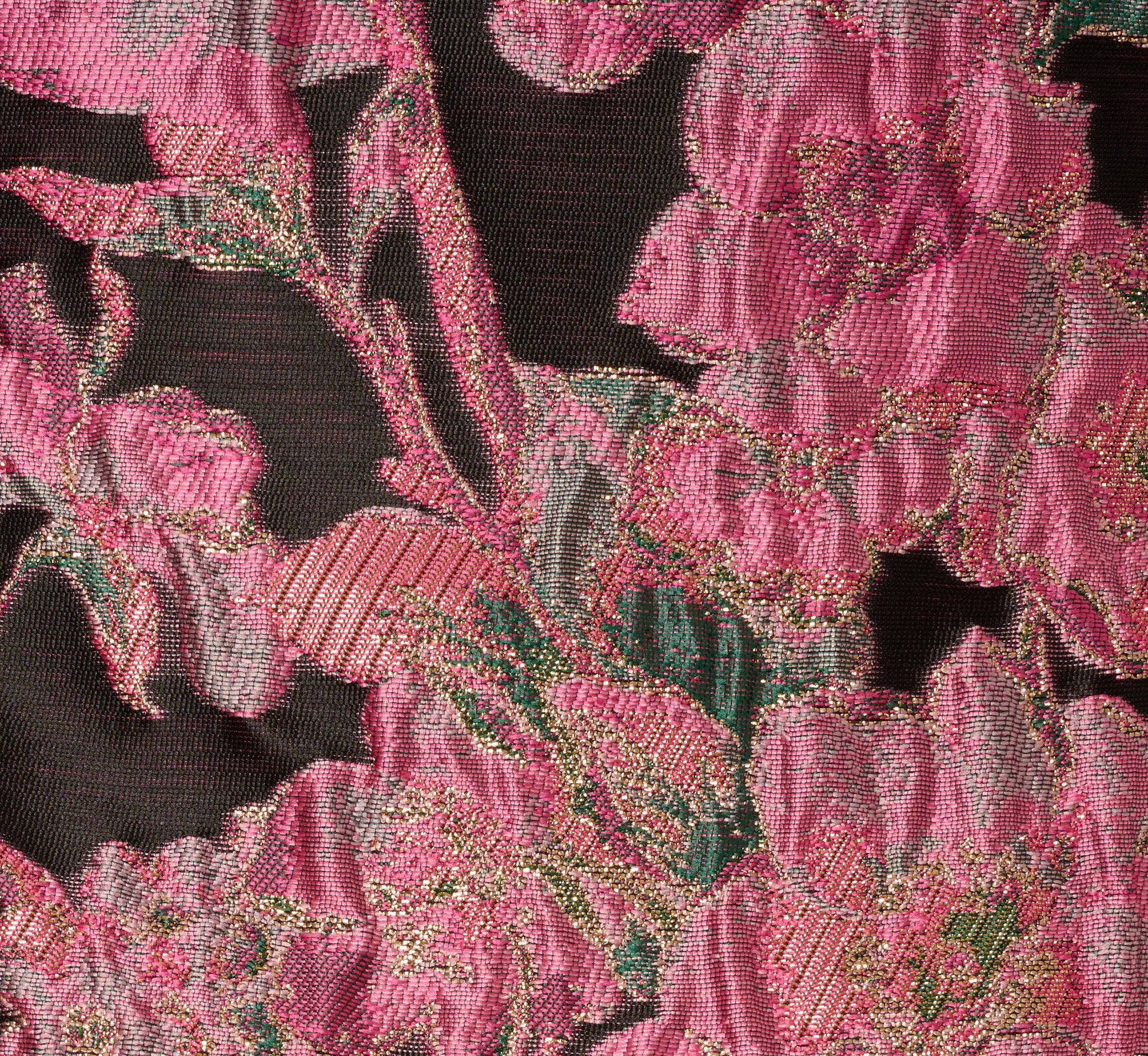 Sleeveless Metallic Floral Jacquard Midi Dress In Black Pink Multi