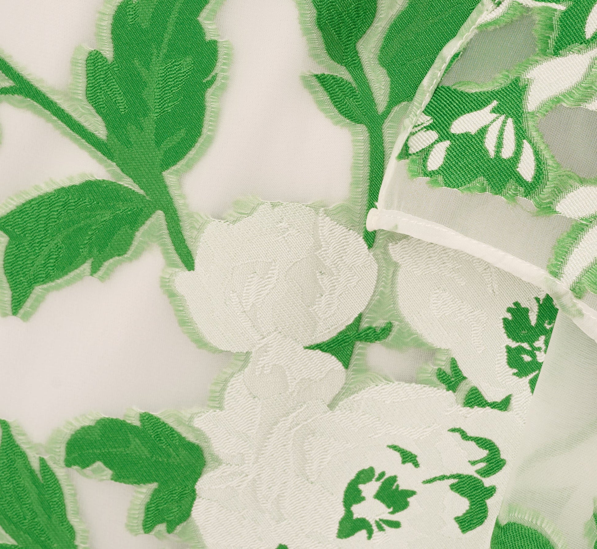 Sleeveless Organza Jacquard Mermaid Midi Dress In Green Ivory