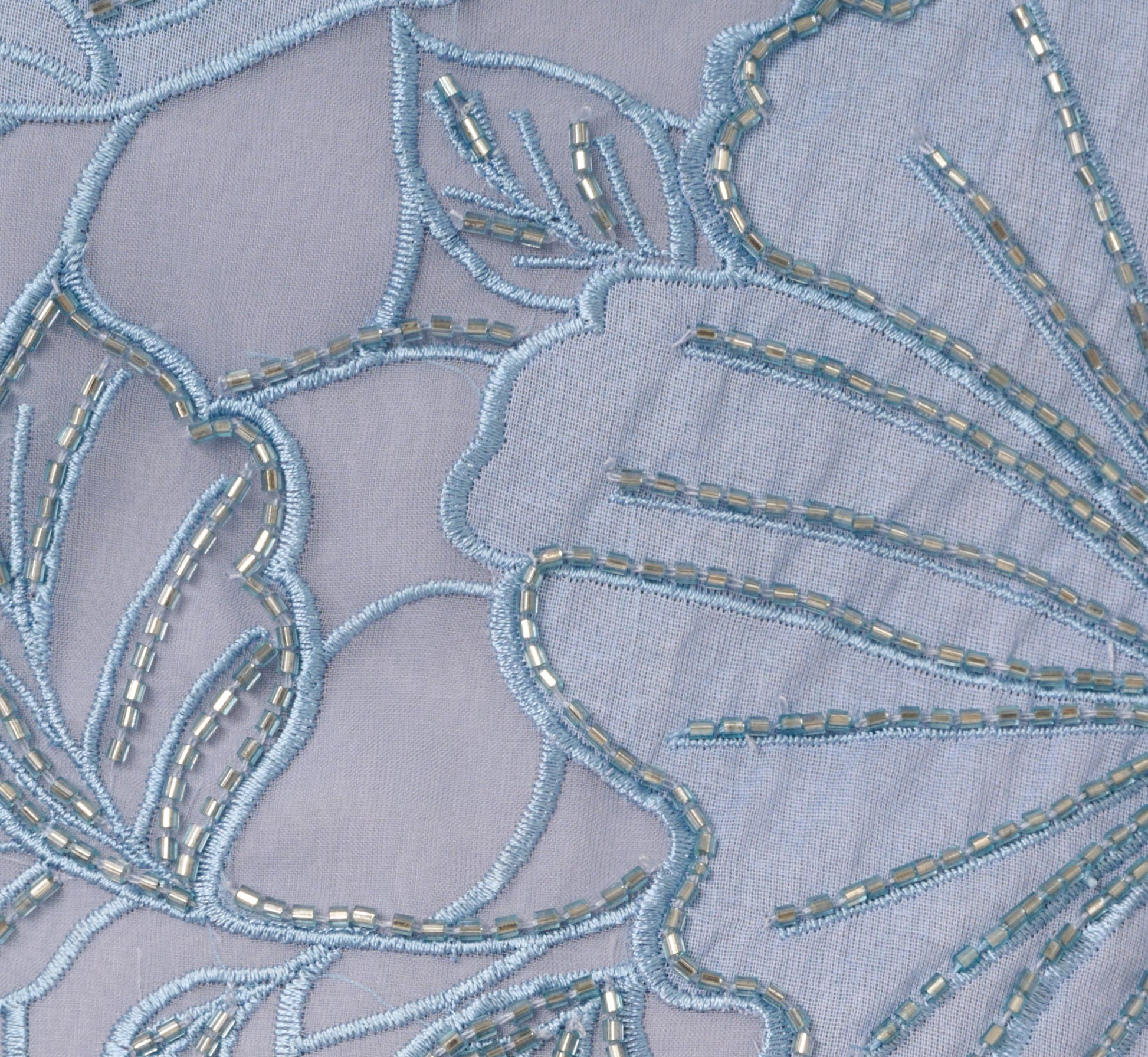 Strapless Floral Embroidered High Low Midi Dress In Blue Cloud