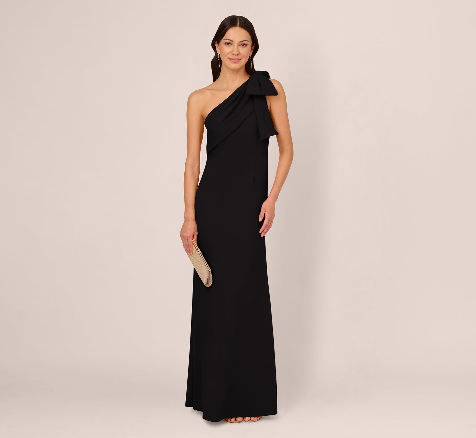 Stretch Crepe One Shoulder Mermaid Gown With Bow Accent In Black