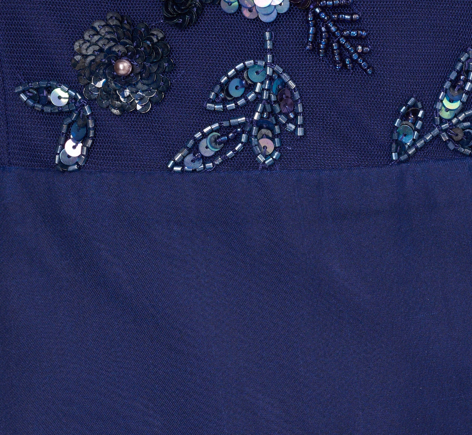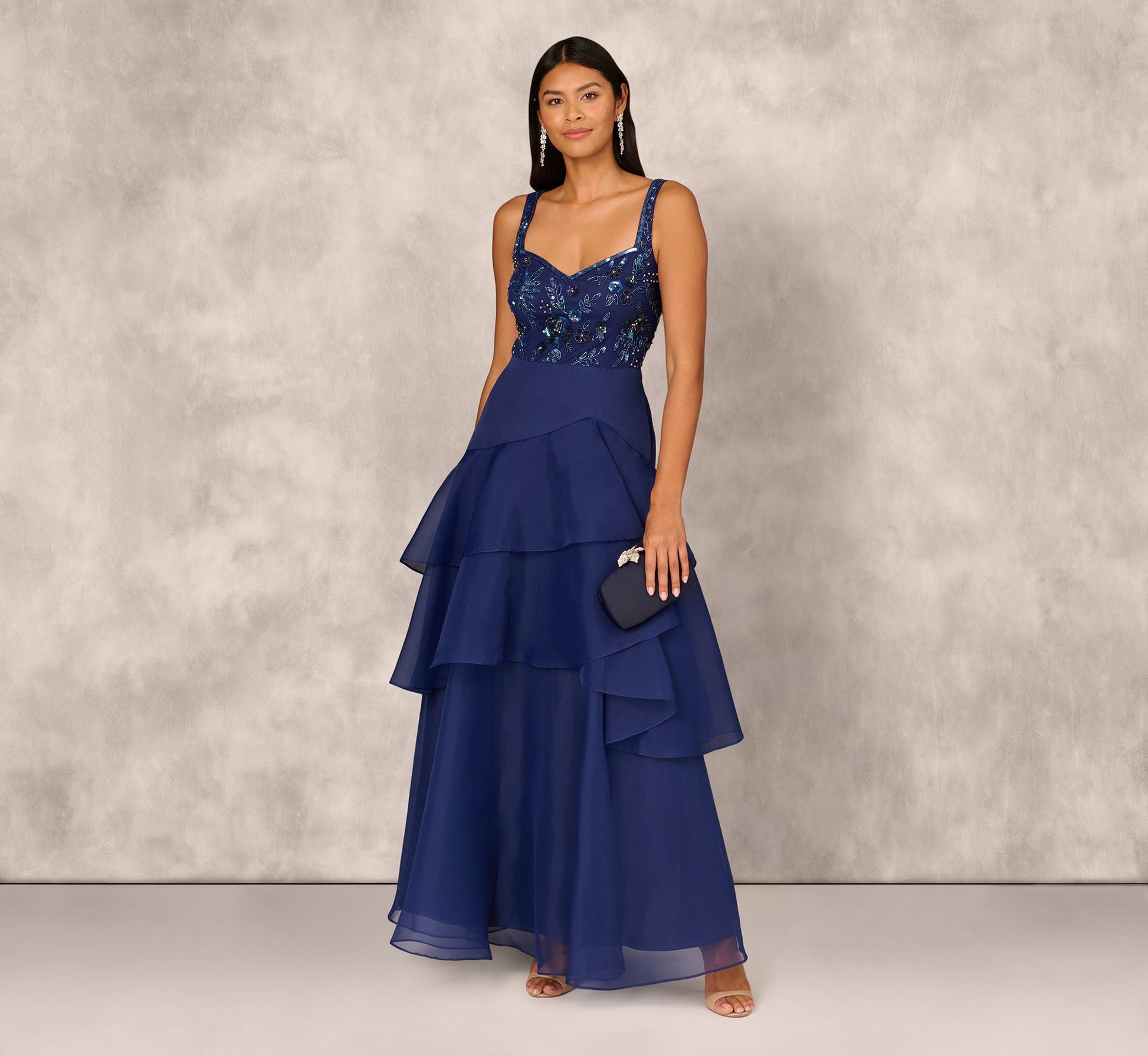 Tiered Organza Gown With Beaded Bodice In Navy