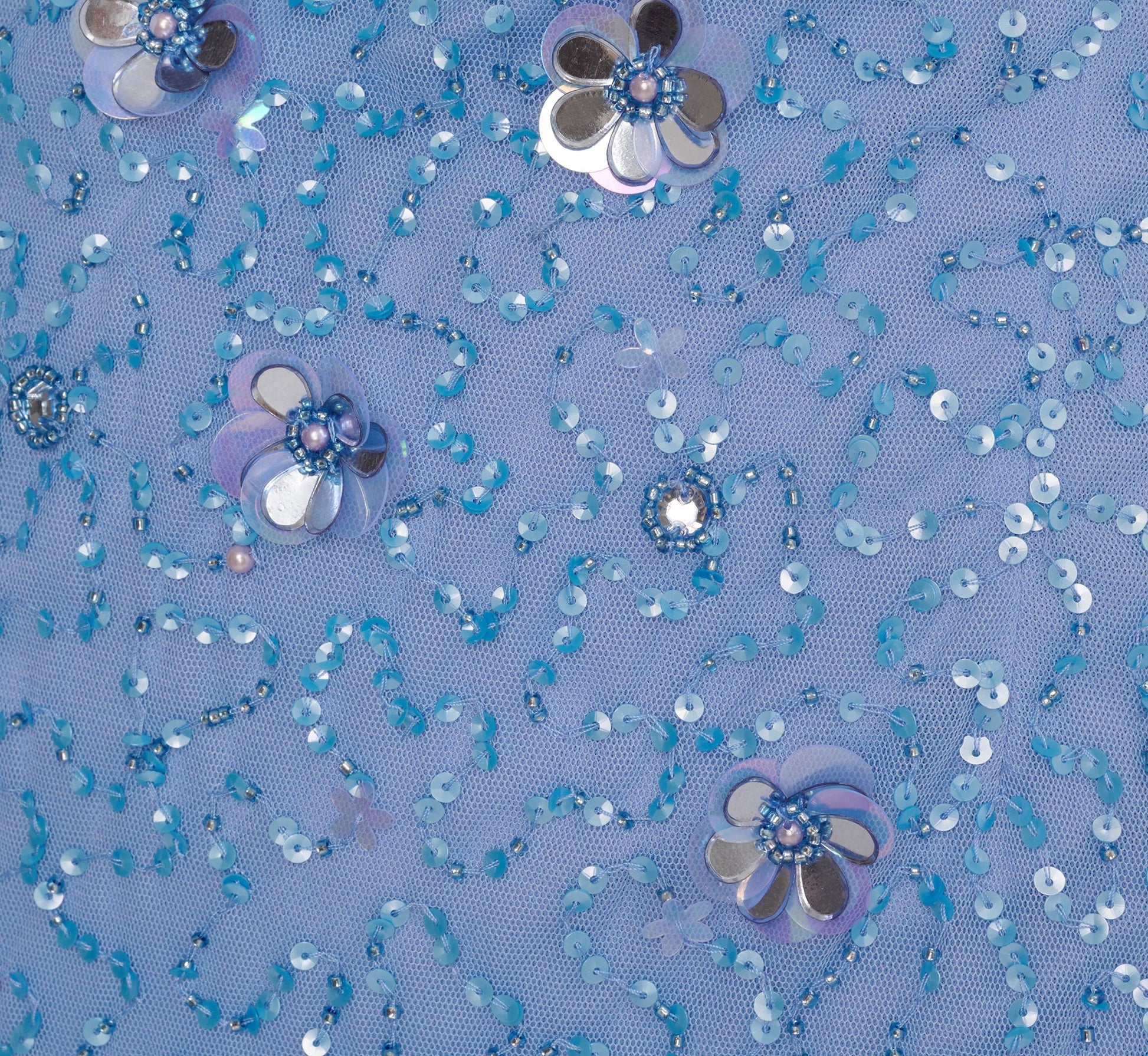 Tulip Sleeve 3D Floral Beaded Mermaid Dress In Bluebell