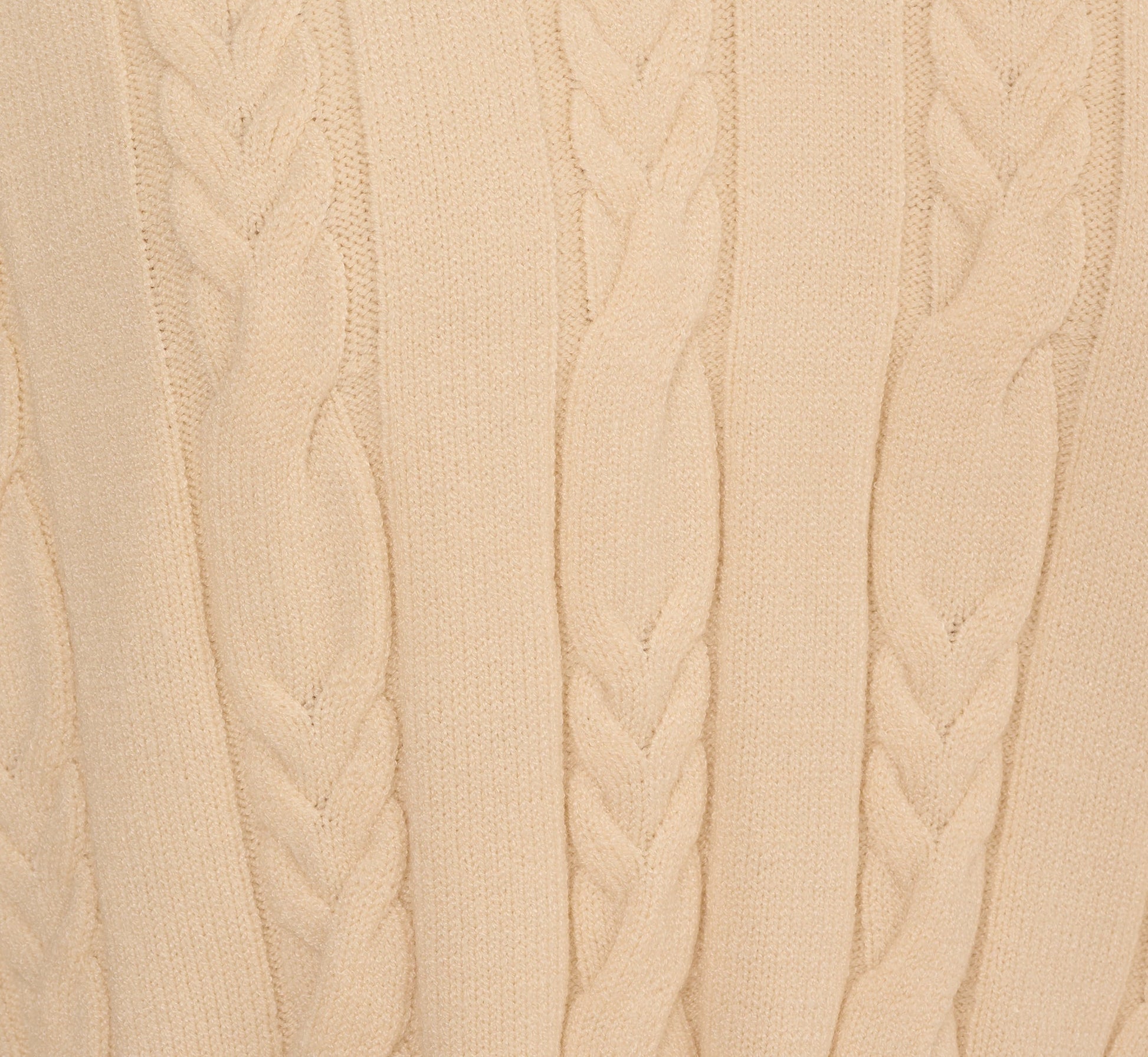 V Neck High Low Cable Knit Sweater In Cream Blue Moon